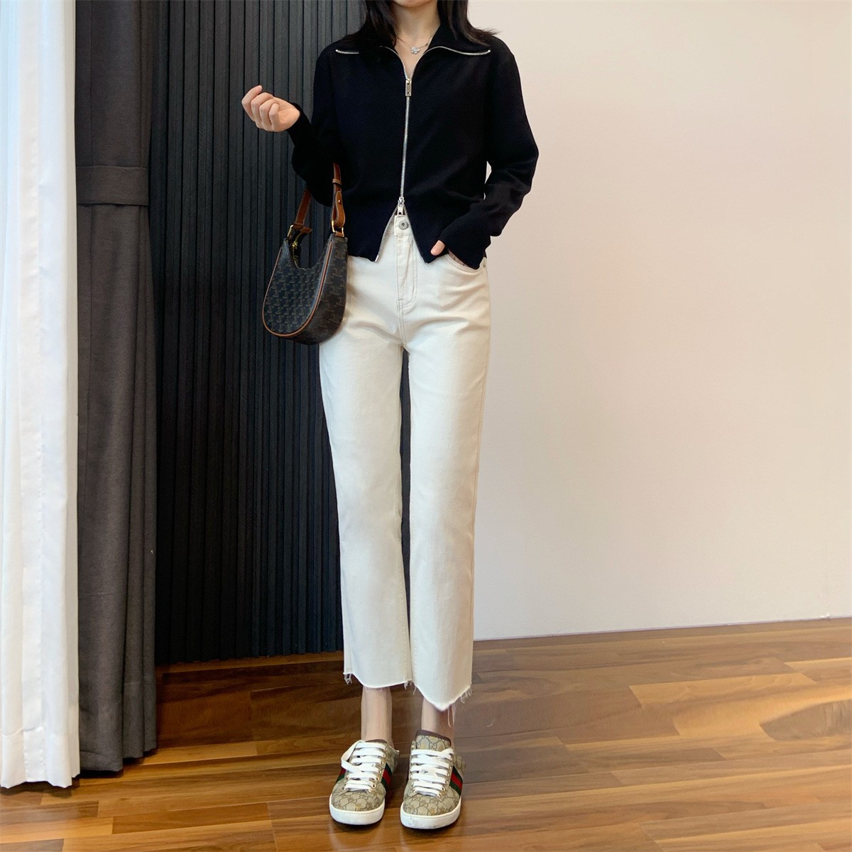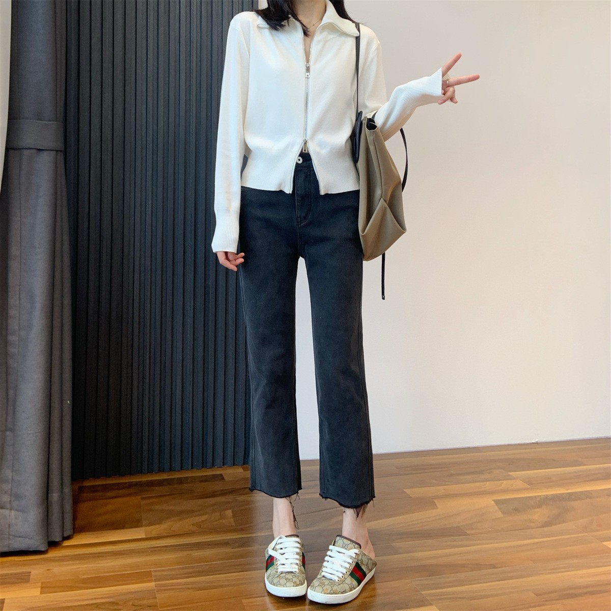 마을 가게의 보물 ~ 4 색 프렌치 스틱 바지! 가을 새로운 빈티지 청바지 여성의 작은 슬림 스트레이트 파이프 바지