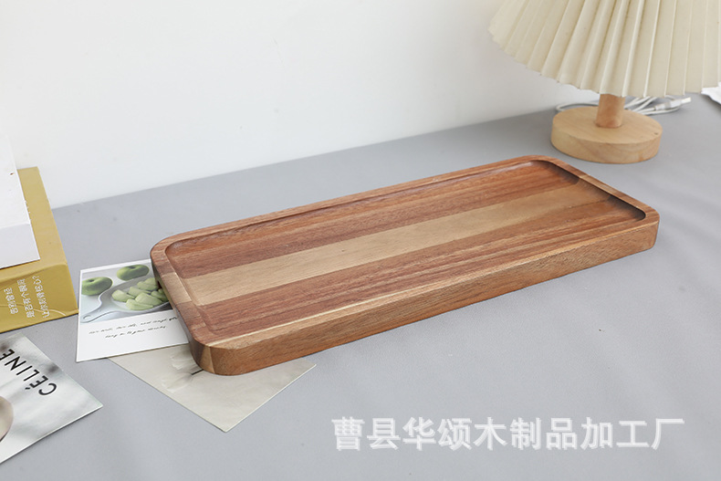 일본 아카시아 나무 쟁반 가정용 직사각형 단단한 나무 쟁반 과일 케이크를 위한 나무 딤섬 쟁반 나무스토어 가기