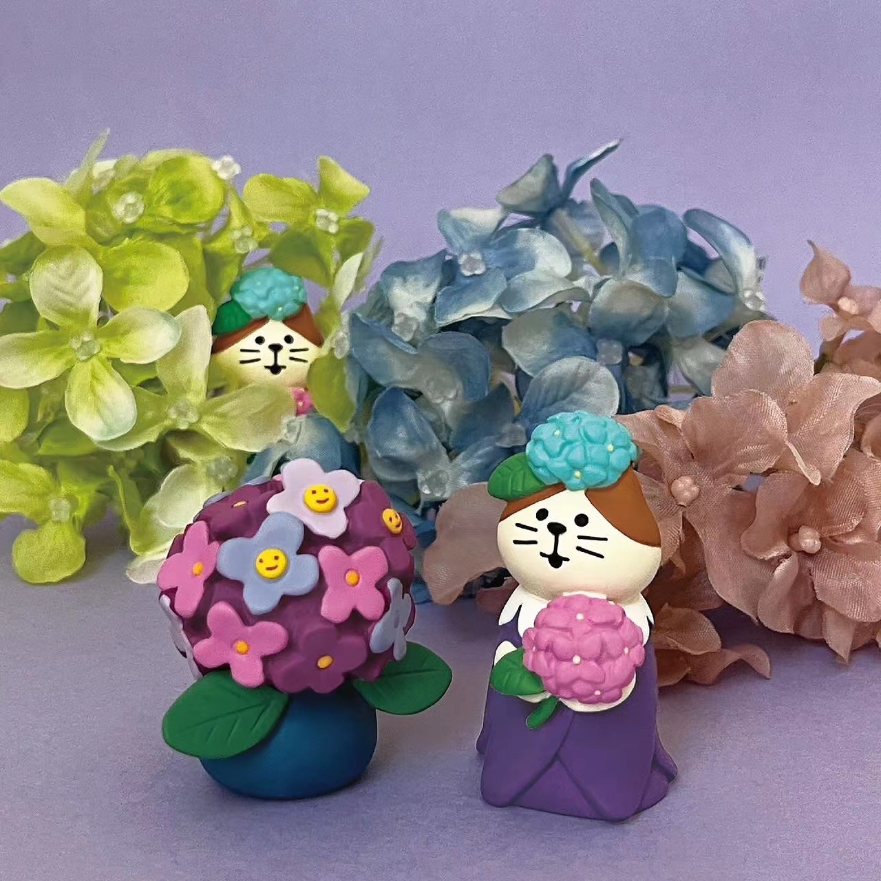 메이 장마 시리즈 일본식 장식품 물을주는 개구리 연꽃 잎 우산 고양이 장식 귀여운 수지 수공예 장식품스토어 가기
