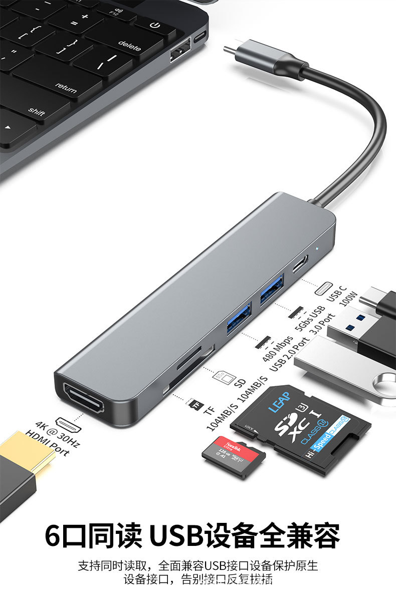 Typec to sd 카드 리더 hdtv4k 6 대 1 멀티 포트 도킹 스테이션 스위치 게임 콘솔 usbc 변환기