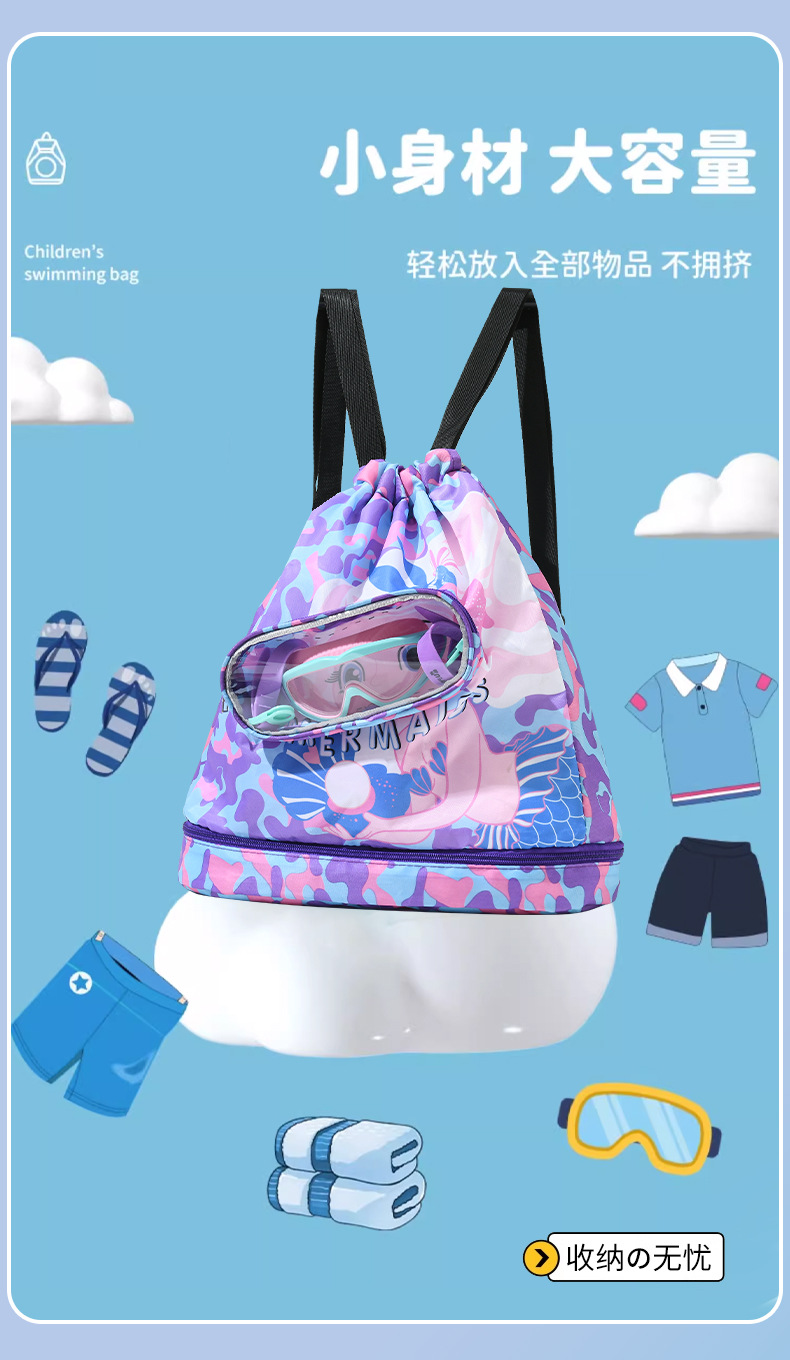 어린이 수영 가방 방수 백팩 건식 및 습식 분리 수영 보관 가방 신발 수납칸이 있는 비치백 만화 귀여운 디자인스토어 가기