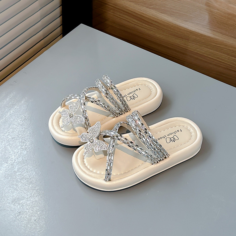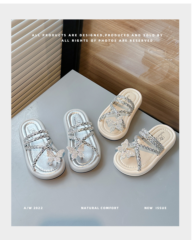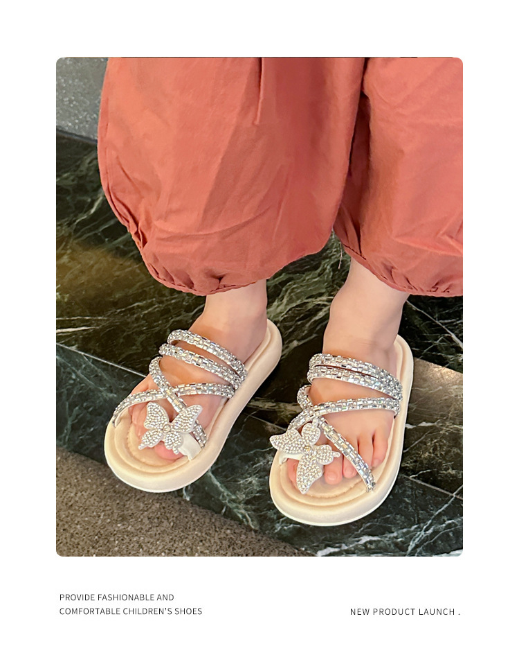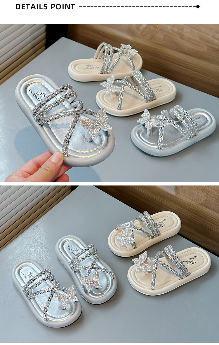 소녀 플립 플롭 외주 2024 여름 새로운 어린이 소녀 나비 소프트 솔 샌들 나비 공주 트렌디 신발스토어 가기