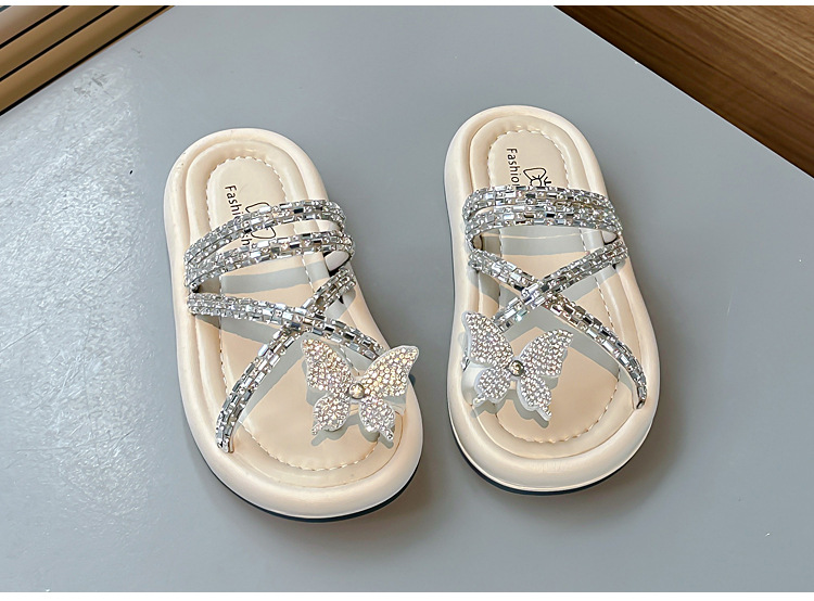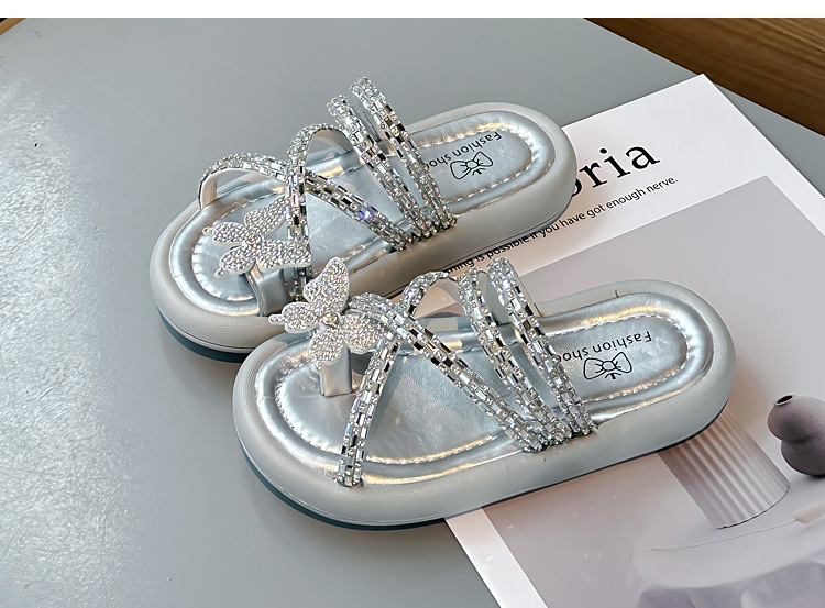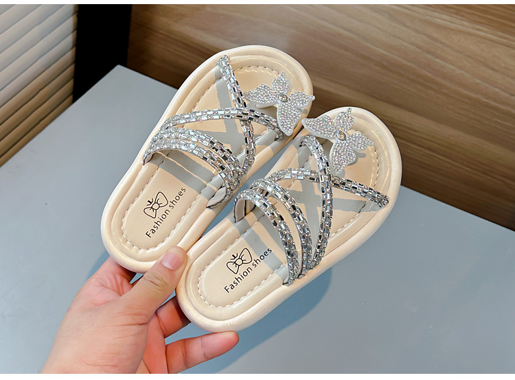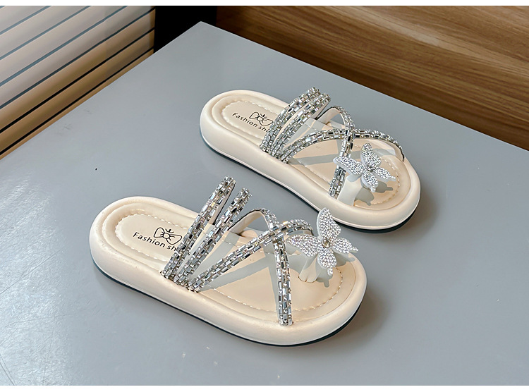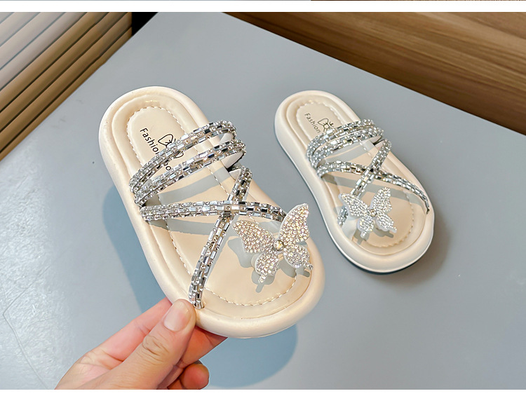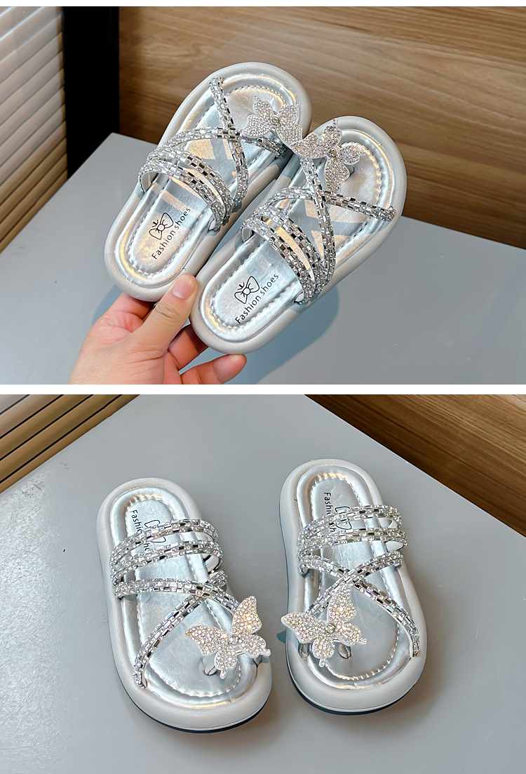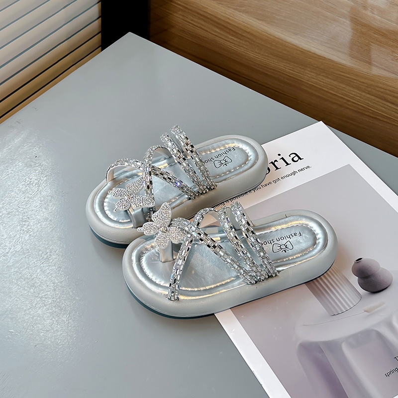 소녀 플립 플롭 외주 2024 여름 새로운 어린이 소녀 나비 소프트 솔 샌들 나비 공주 트렌디 신발스토어 가기