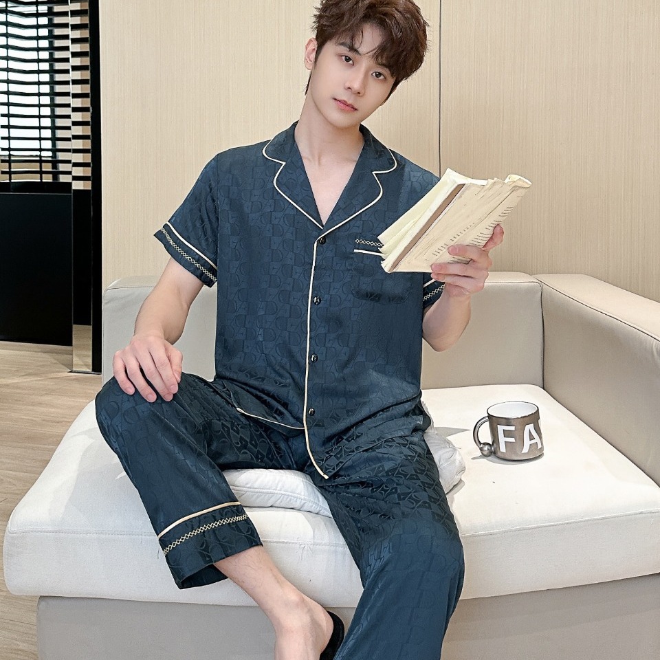 소스 공장 용품 2024 새로운 커플 잠옷 여성 아이스 실크 짧고 긴 흔들리는 음성 자카드 편지 집 옷 세대스토어 가기