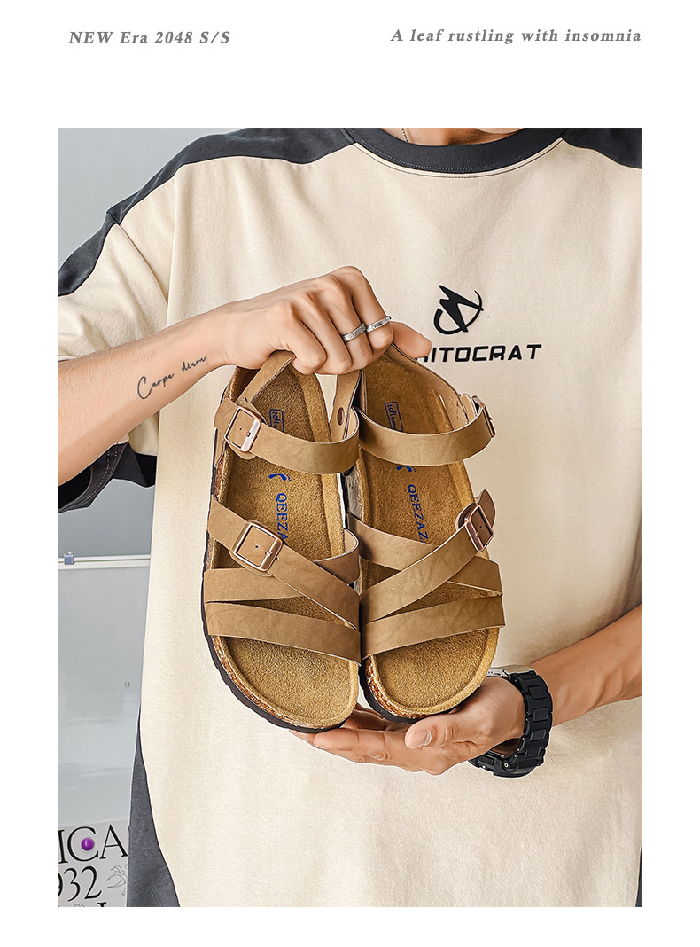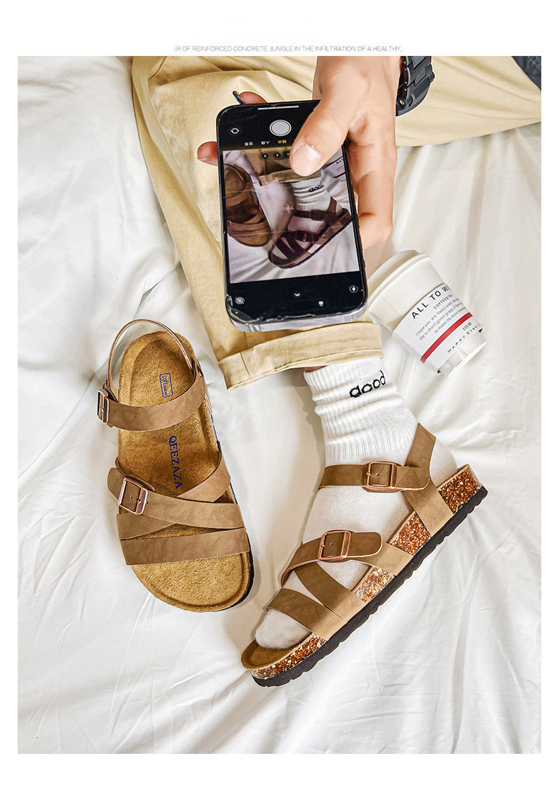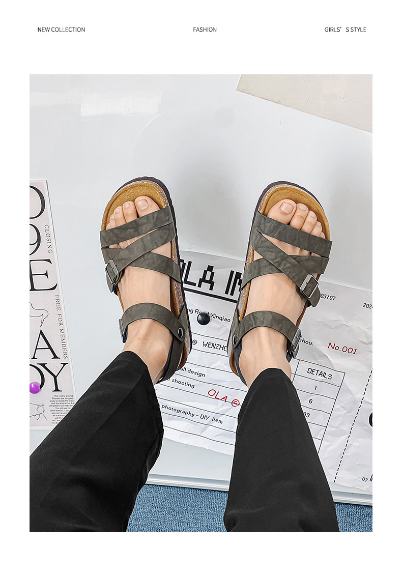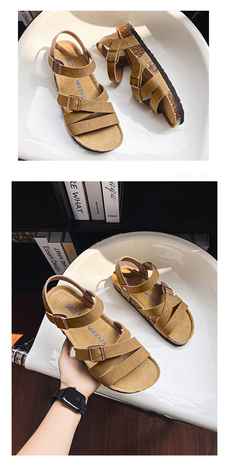 Unisex Retro All-Match Birkenstocks 신발 여름 새 커플 타워 버클 오픈 발가락 외부 캐주얼 로마 비치 신발