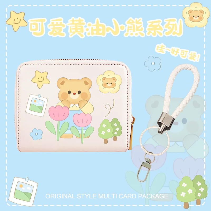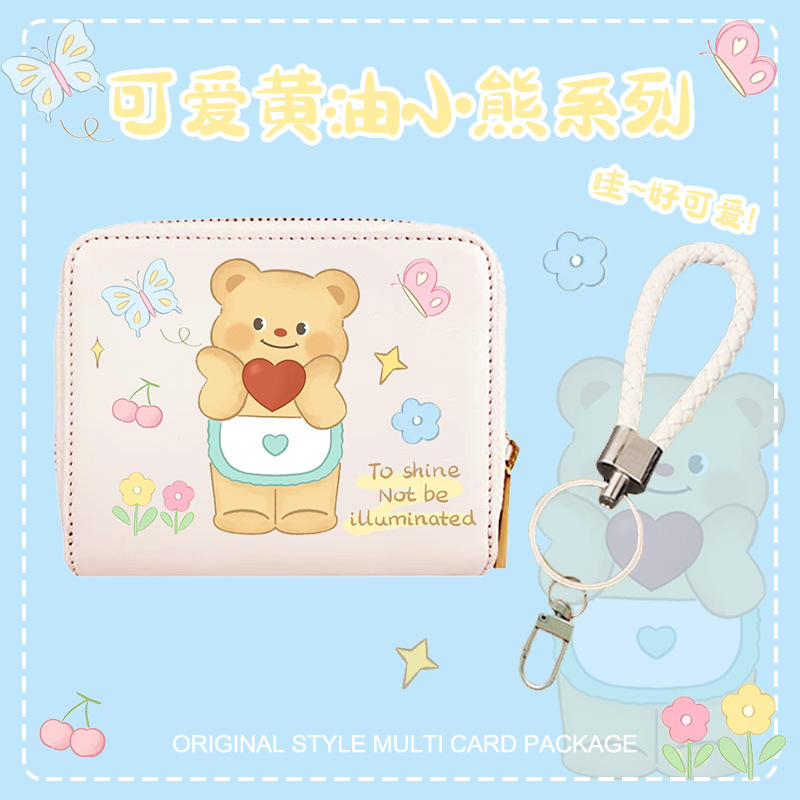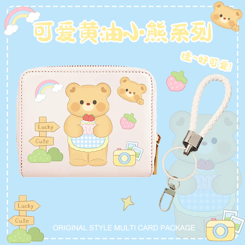 버터베어 카드지갑 겸용 지갑 3 in 1 다기능 만화 캐릭터 소녀 동전지갑 펜던트 수납