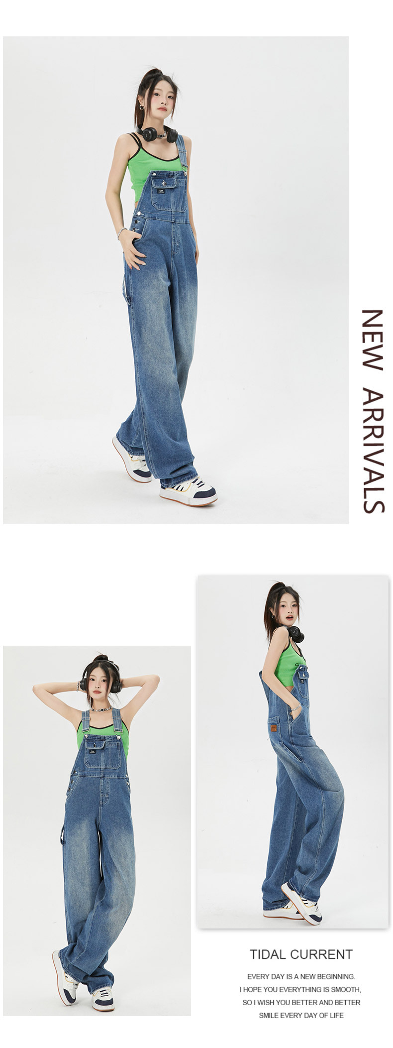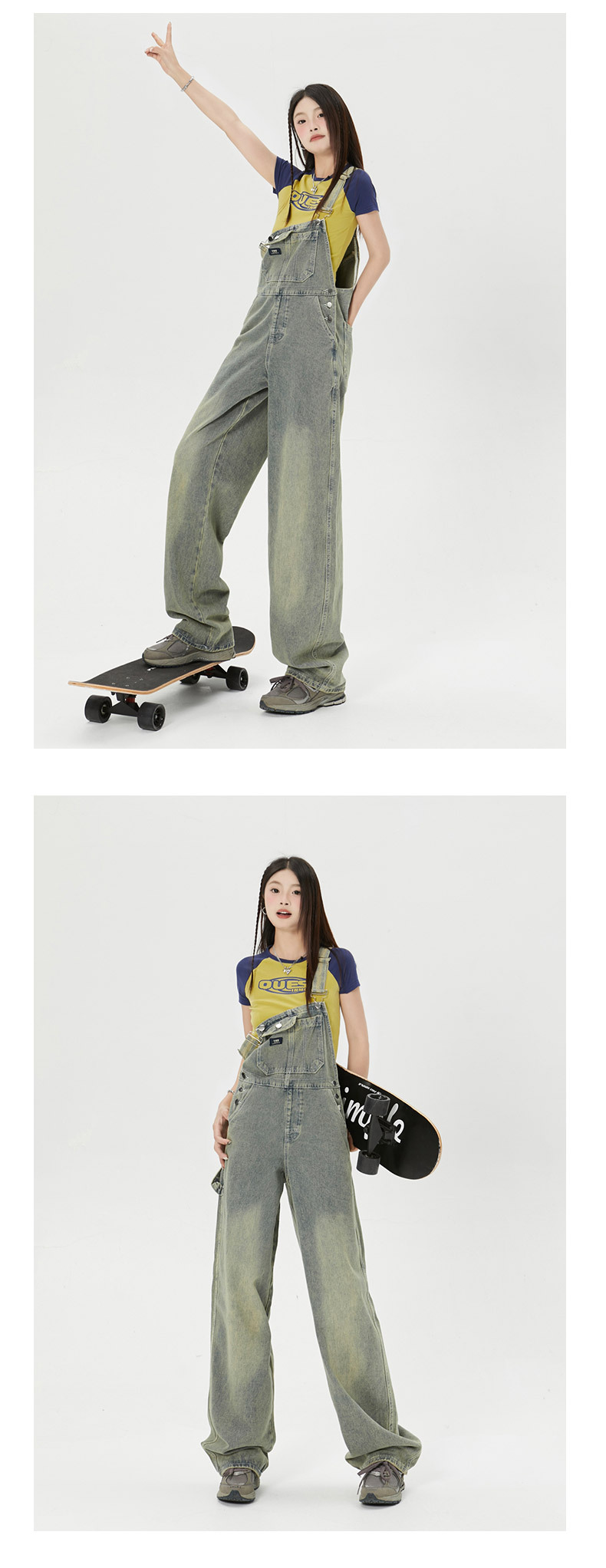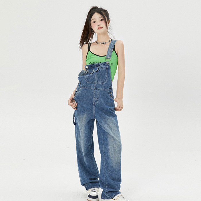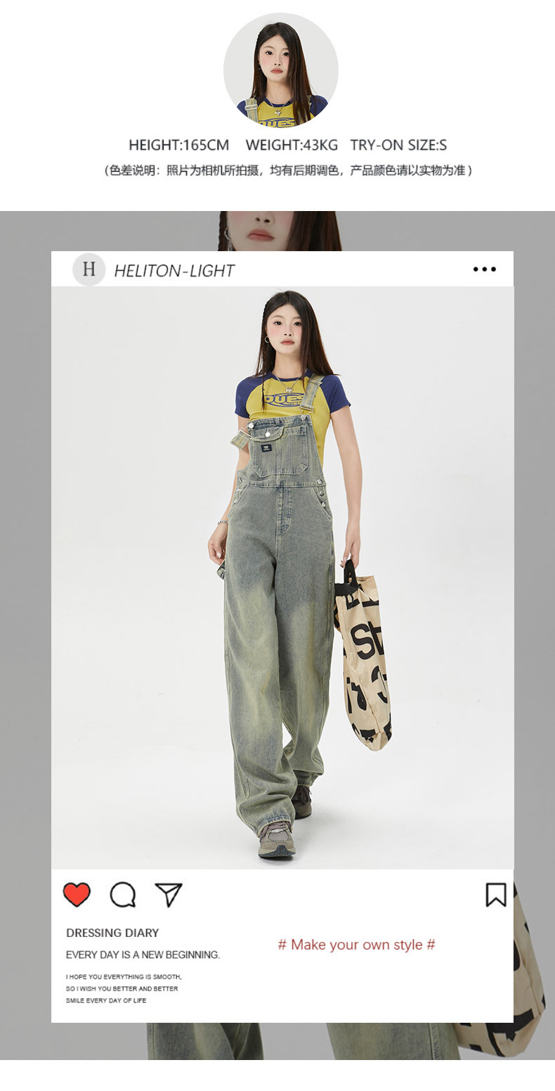 아메리칸 스타일 진흙 노란색 스트랩 청바지 여성의 2024 여름 새로운 스트레이트 튜브 느슨한 넓은 다리 오버 피팅 바지스토어 가기