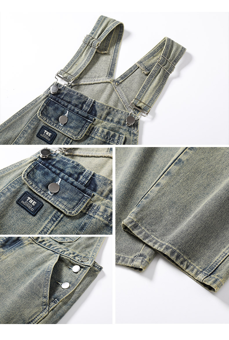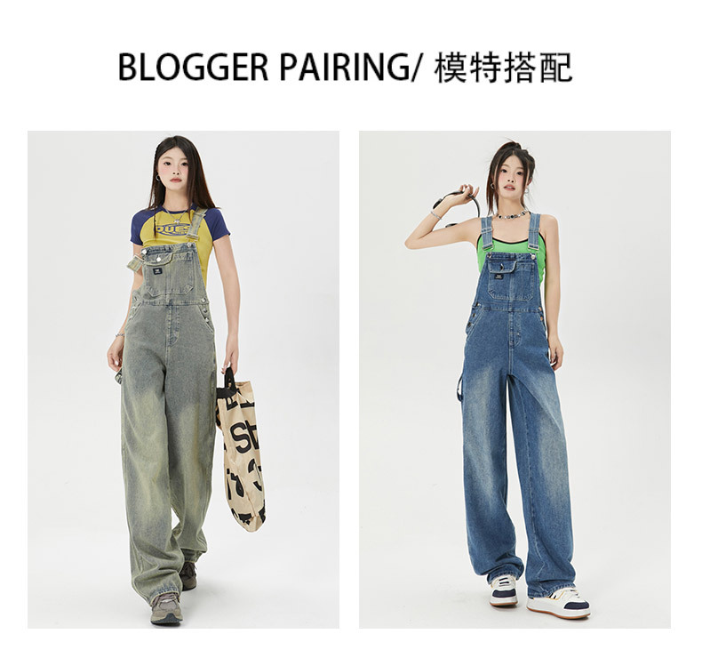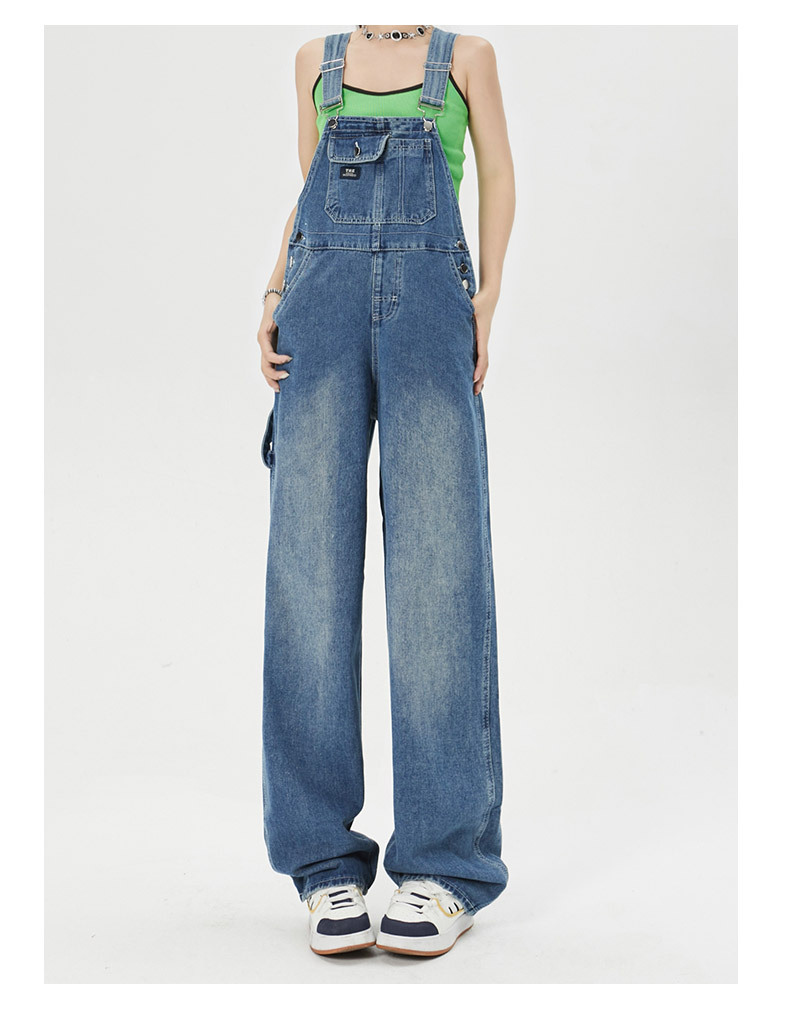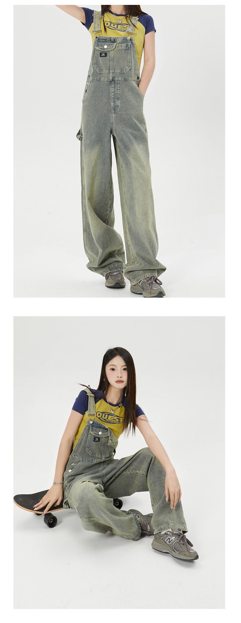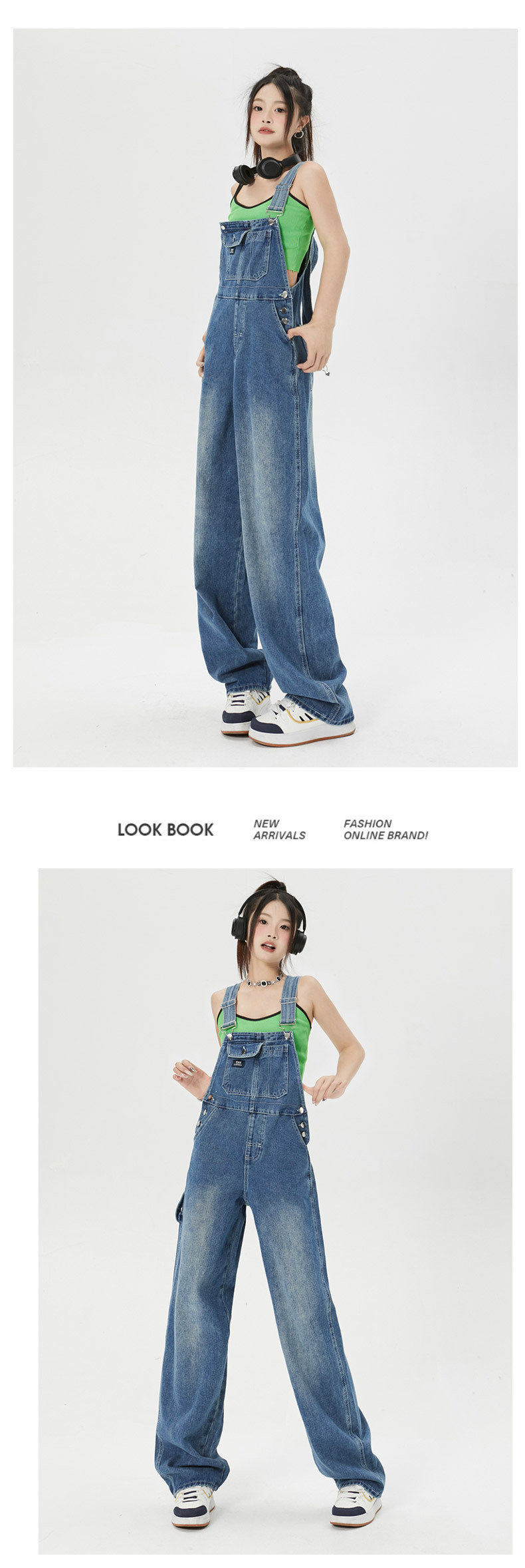 아메리칸 스타일 진흙 노란색 스트랩 청바지 여성의 2024 여름 새로운 스트레이트 튜브 느슨한 넓은 다리 오버 피팅 바지스토어 가기