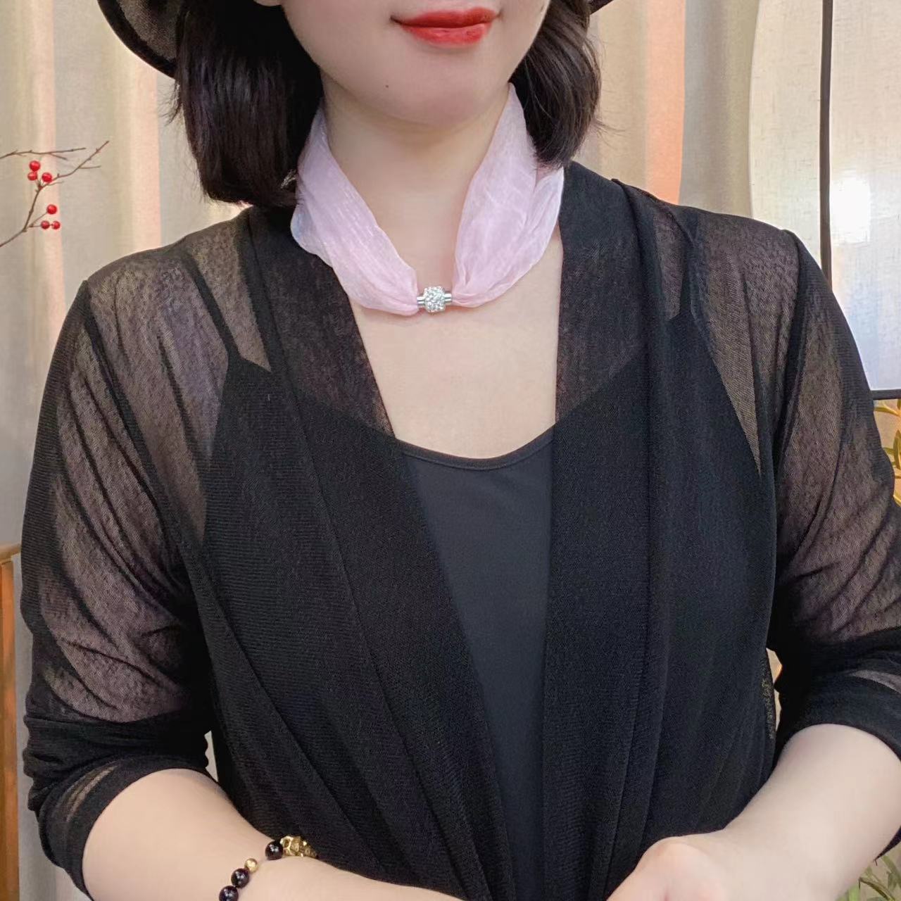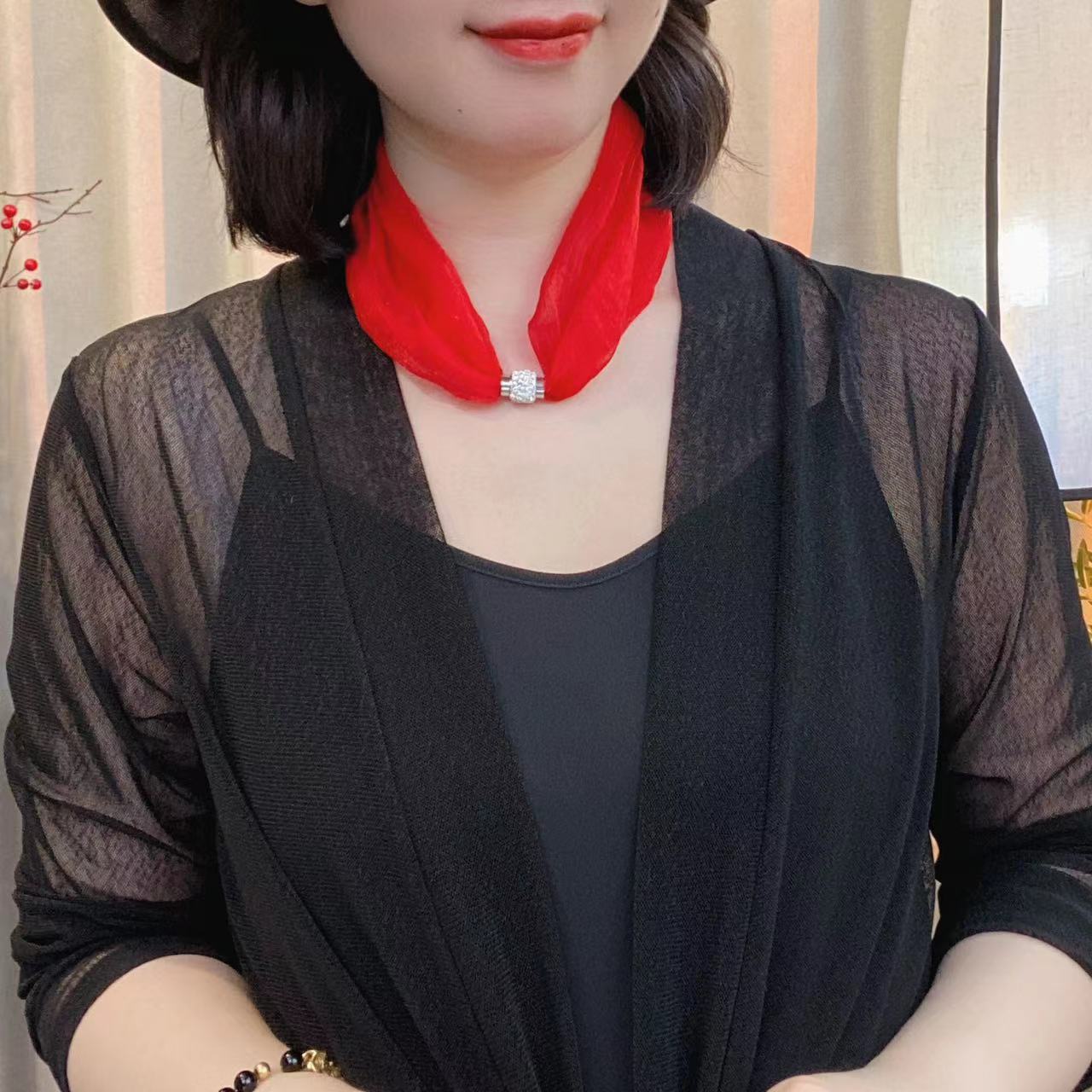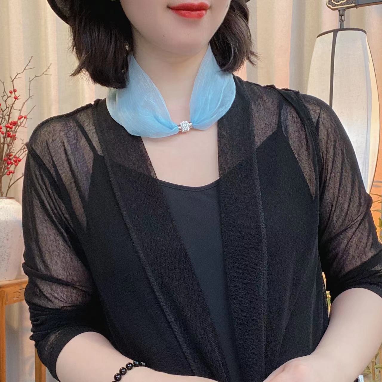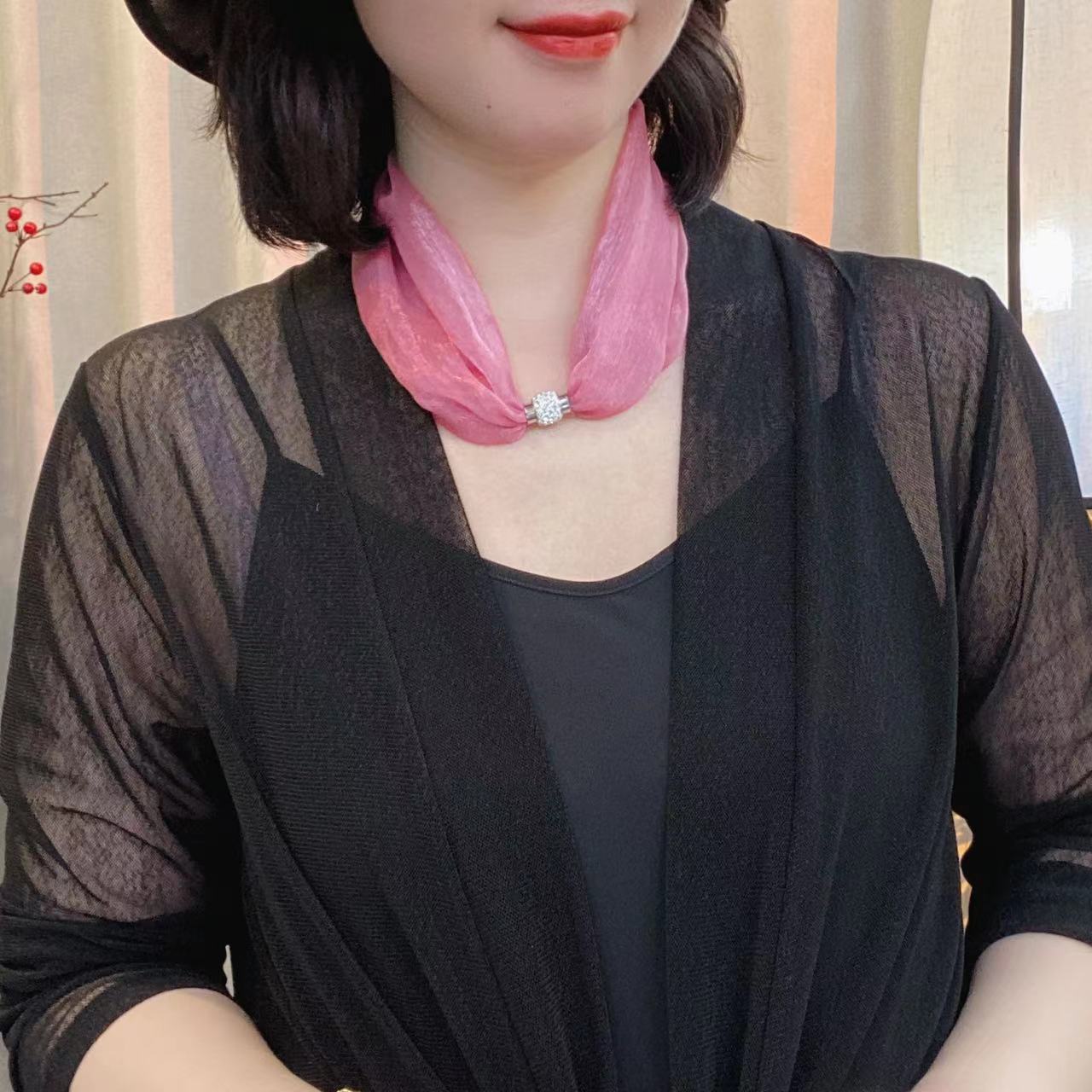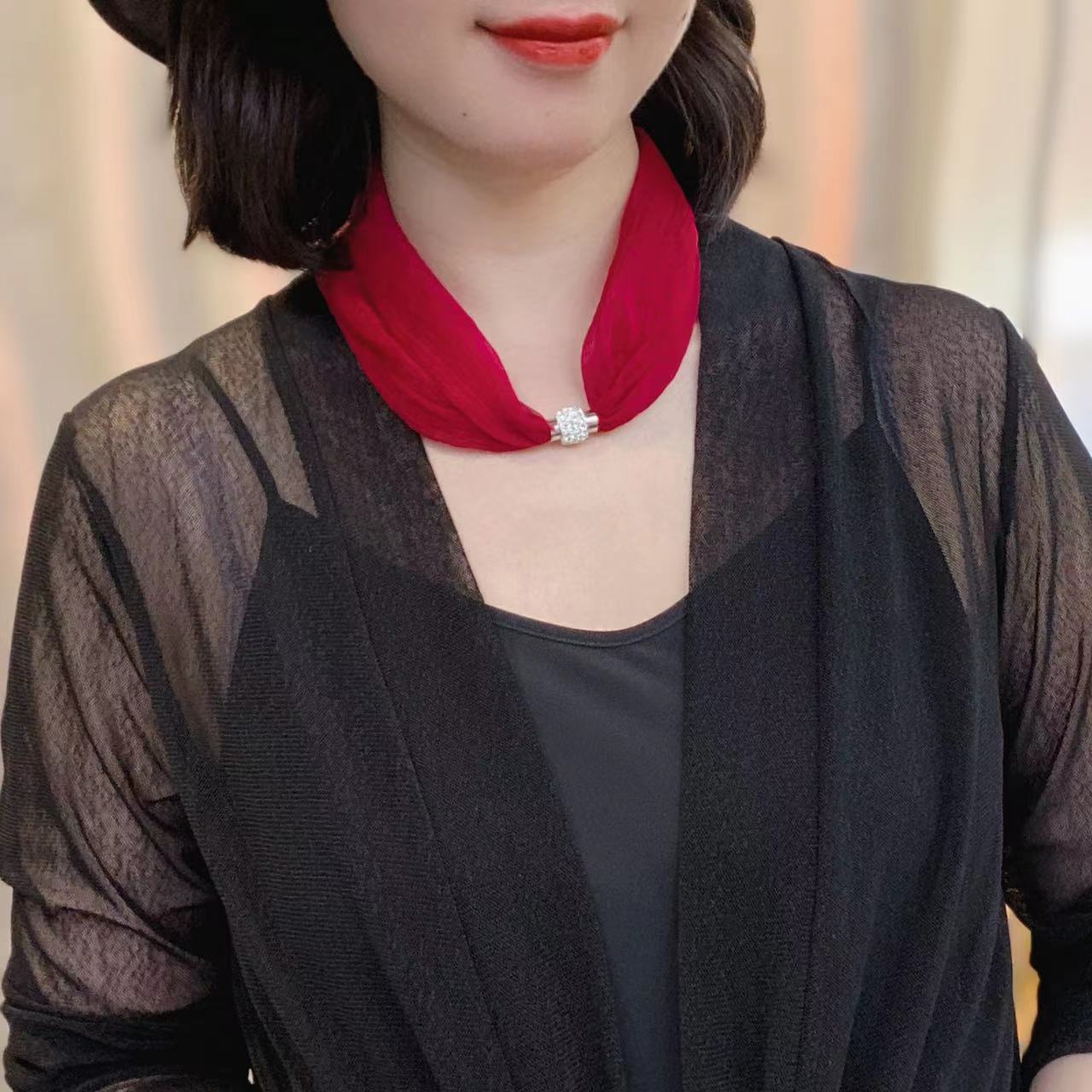 코코 새로운 단색 마그네틱 스카프 패션 기질 목 칼라 체인 작은 스카프 (길이 45cm)스토어 가기