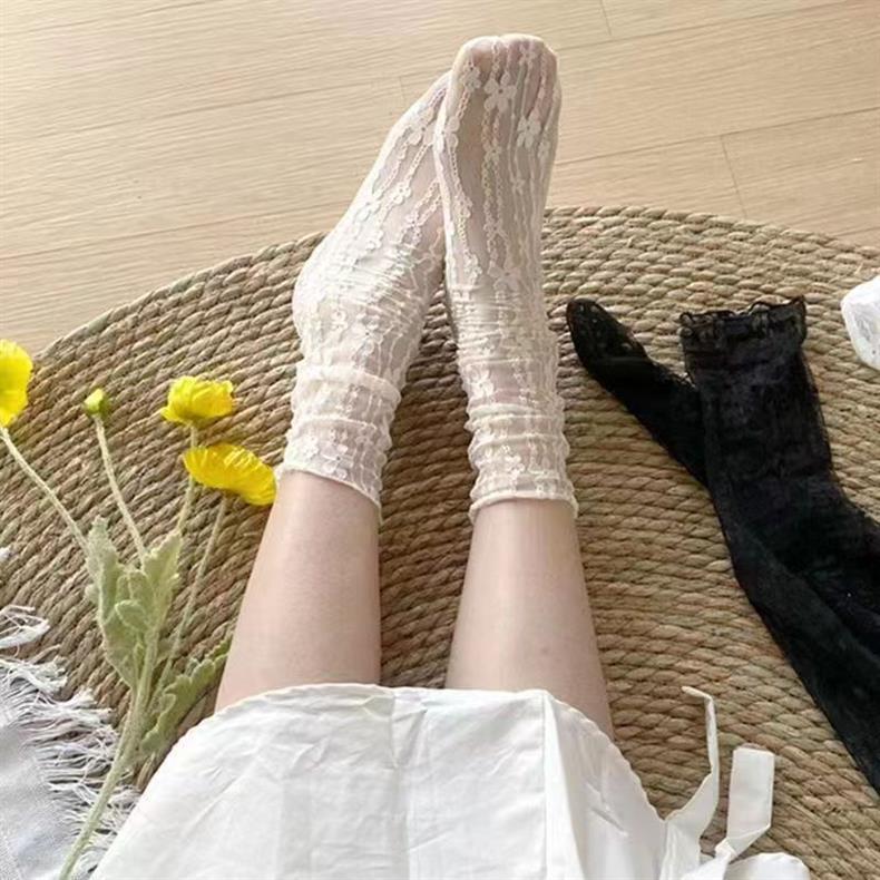여성용 화이트 레이스 파일 양말, 여름용 메쉬 얇은 종아리 양말, 일본식 jk 플라워 메리제인 통기성 양말