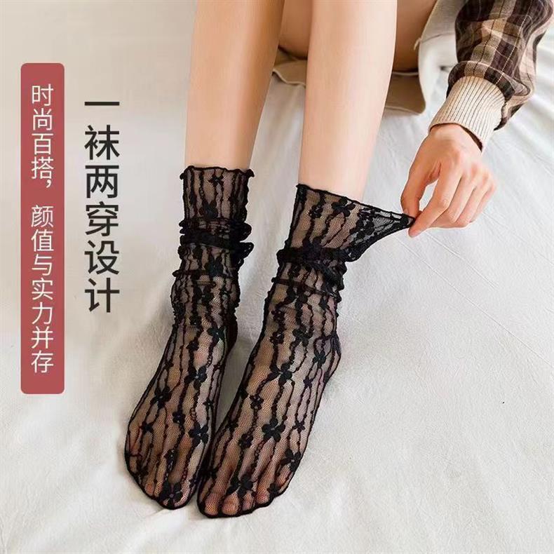 여성용 화이트 레이스 파일 양말, 여름용 메쉬 얇은 종아리 양말, 일본식 jk 플라워 메리제인 통기성 양말스토어 가기