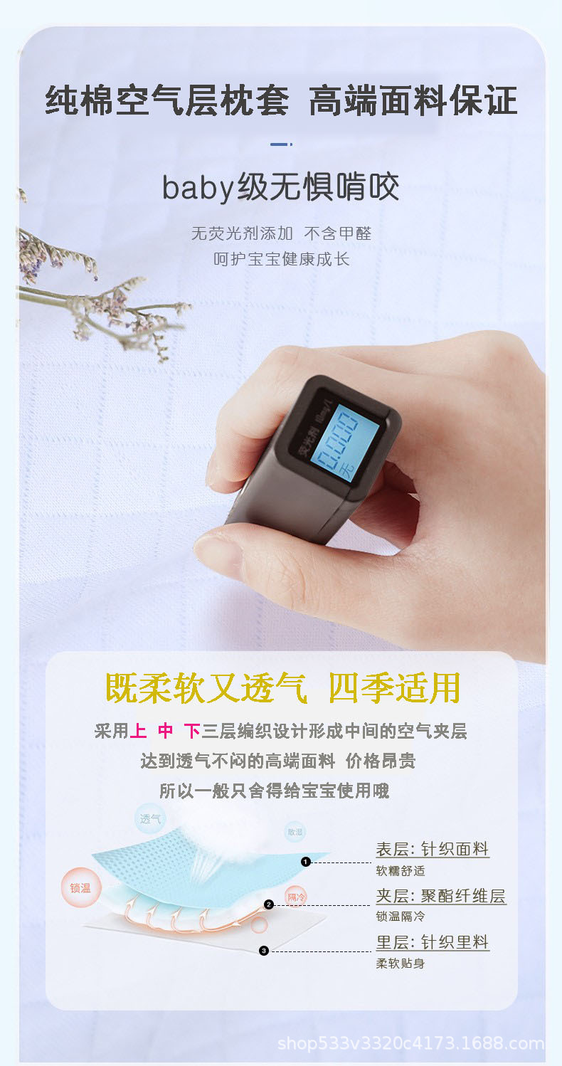 特别说明:本款产品有三层套子,最外层纯棉空气层面料的颜色是指定的,中间层纯棉面料 和最内层的加密层面料的颜色是随机搭配发货的。敬请注意。