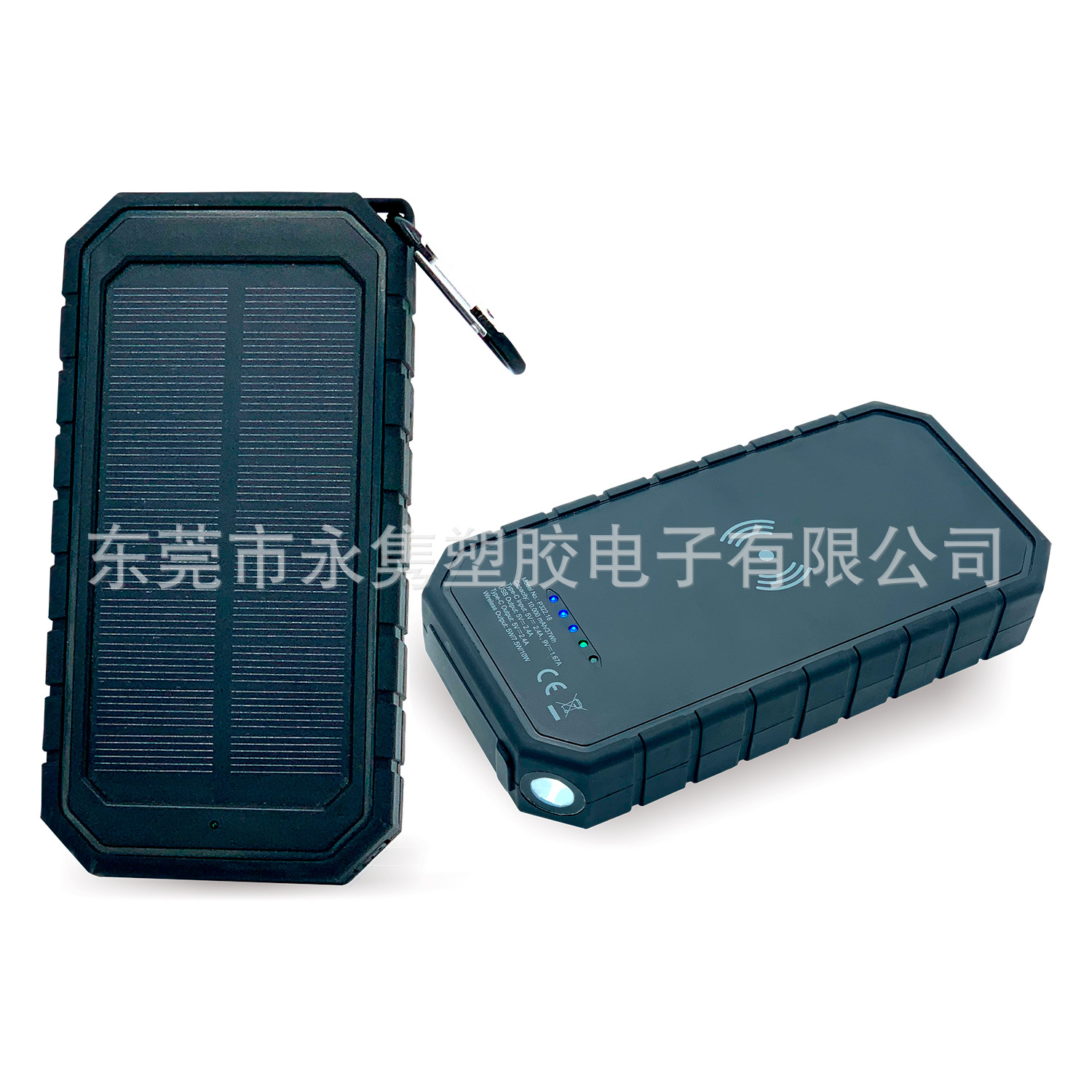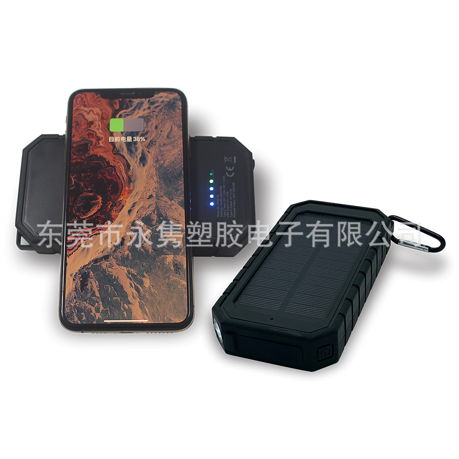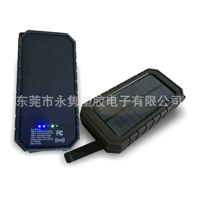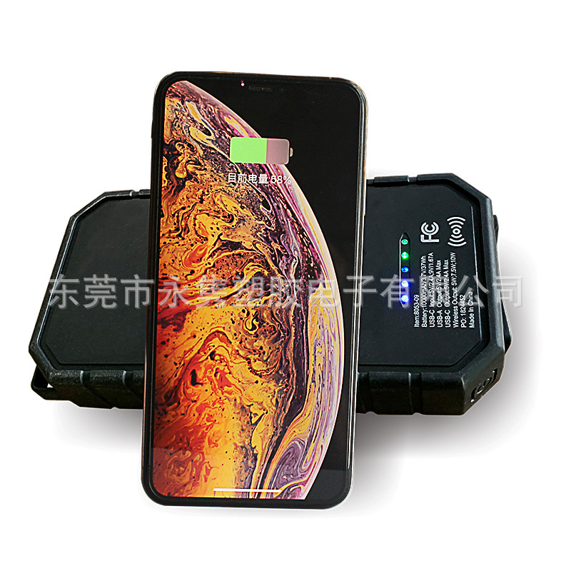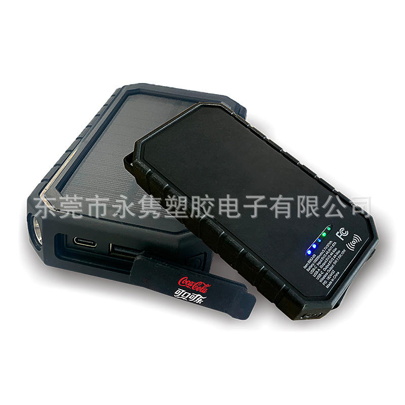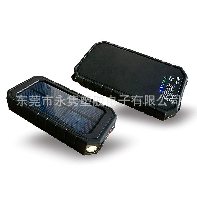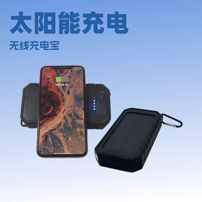 产品名称:防水防摔户外太阳能移动电源带无线充+LED应急照明灯