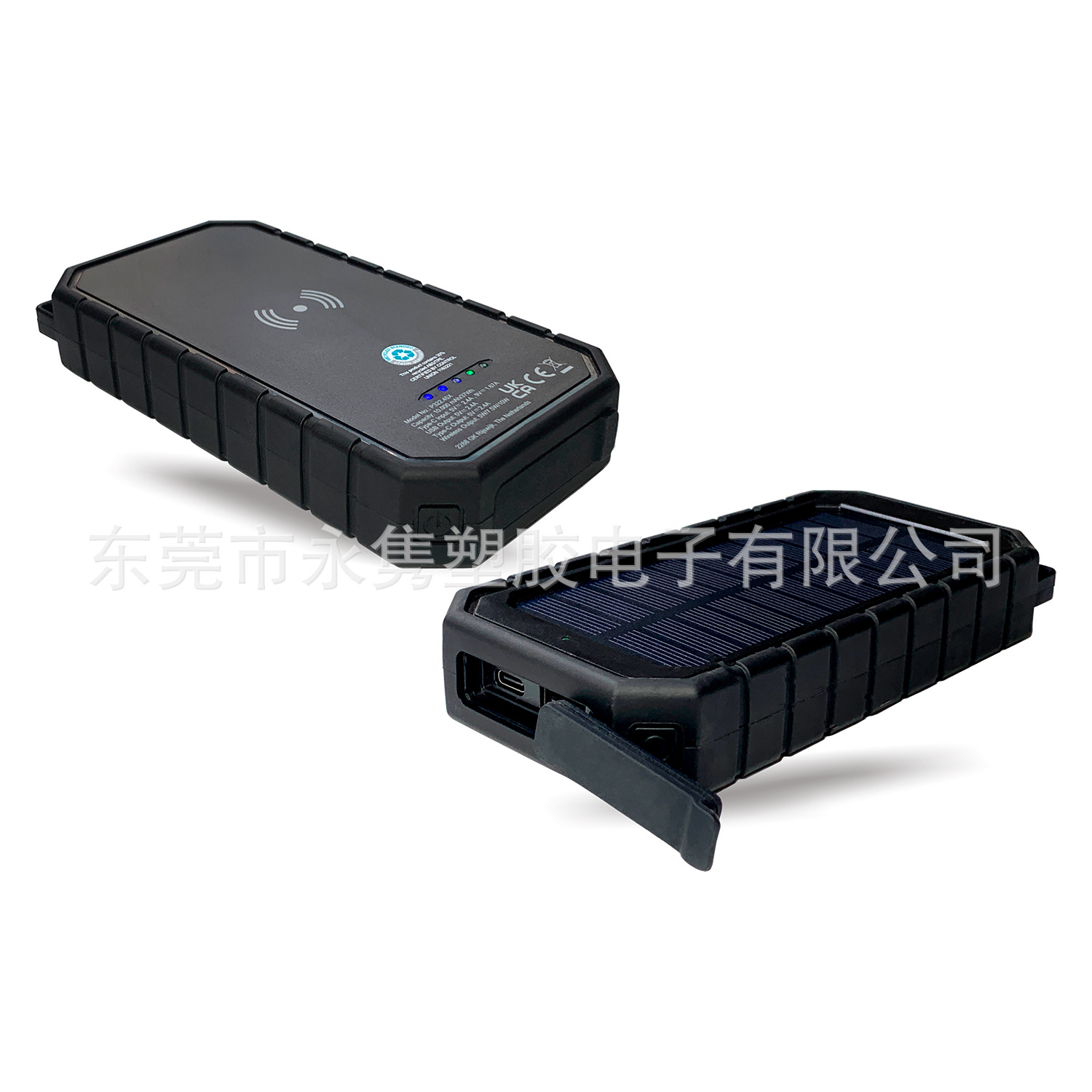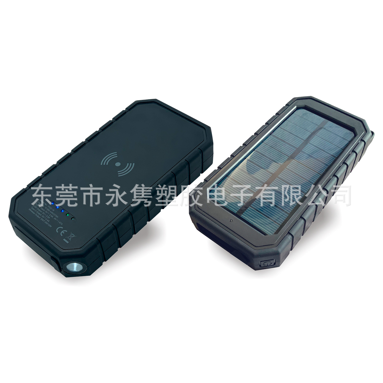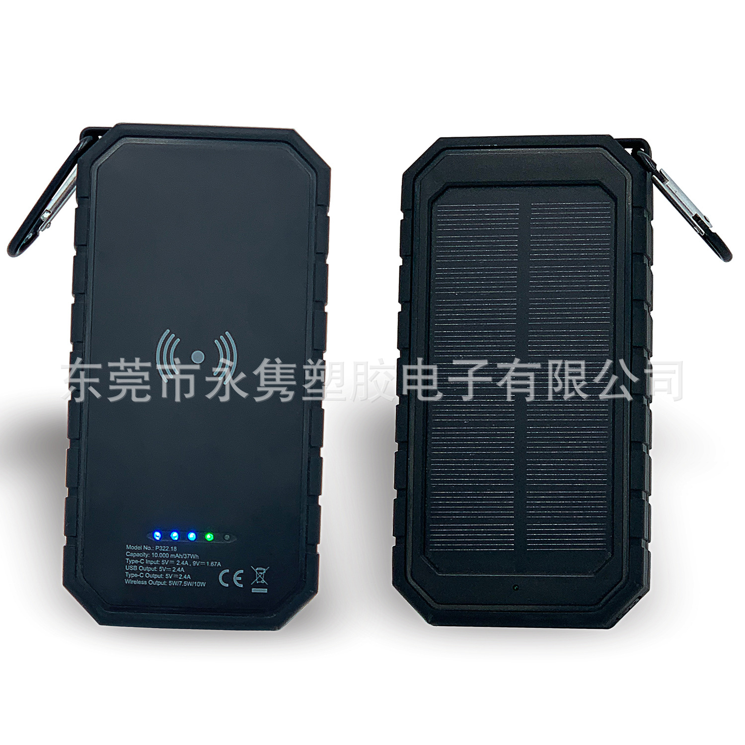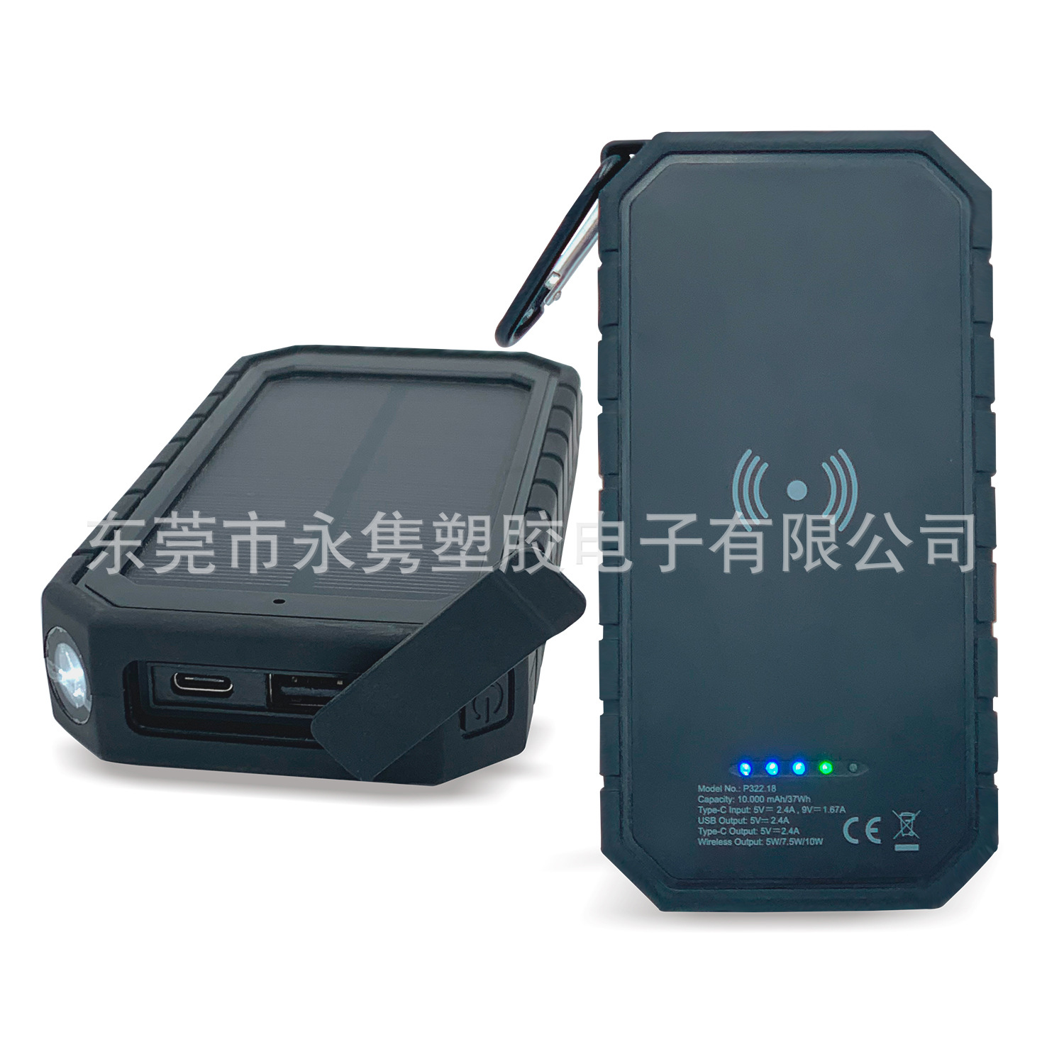 产品名称:防水防摔户外太阳能移动电源带无线充+LED应急照明灯