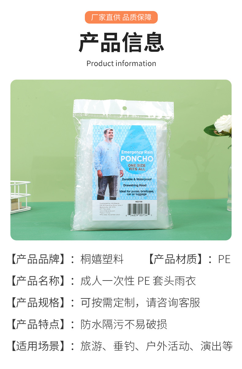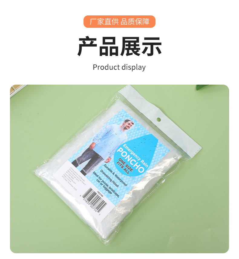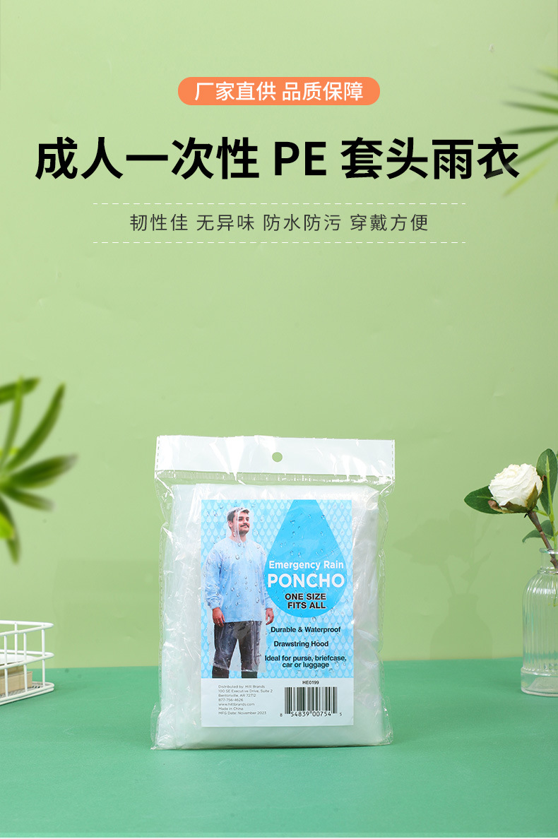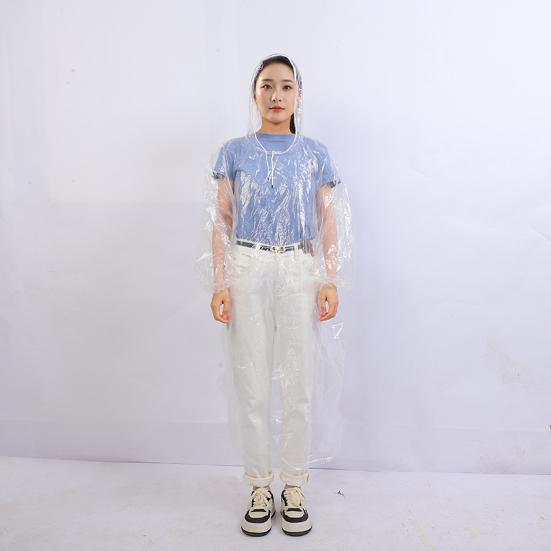 일회용 비옷 성인 어린이 풀오버 새로운 소재 투명 화이트 후드 로프 커프 고무 밴드 야외 여행스토어 가기