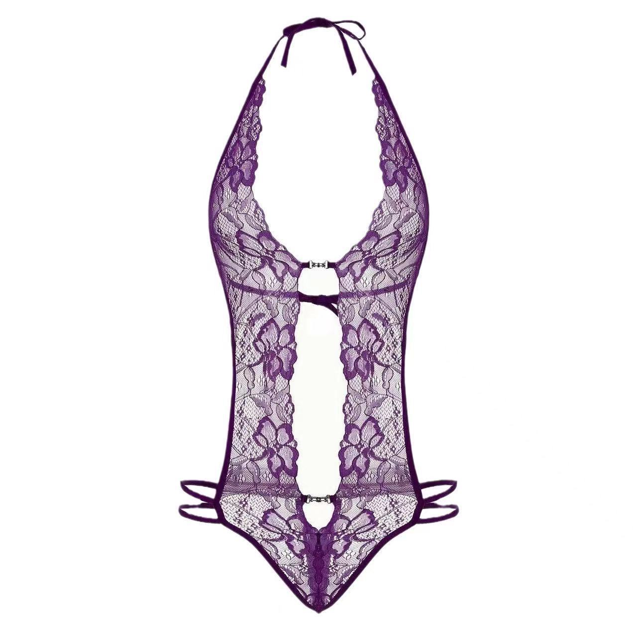 유럽과 미국의 섹시한 속옷 섹시한 여성 유혹 여성의 몸 모양 레이스 슬링 할로우 관점 파자마 세트스토어 가기