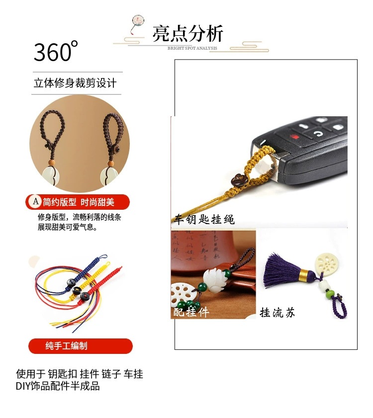 플랫 매듭 로프 플랫 매듭 벨트 행거 수제 매듭 키 체인 펜던트 로프 골동품 반제품 DIY 액세서리스토어 가기