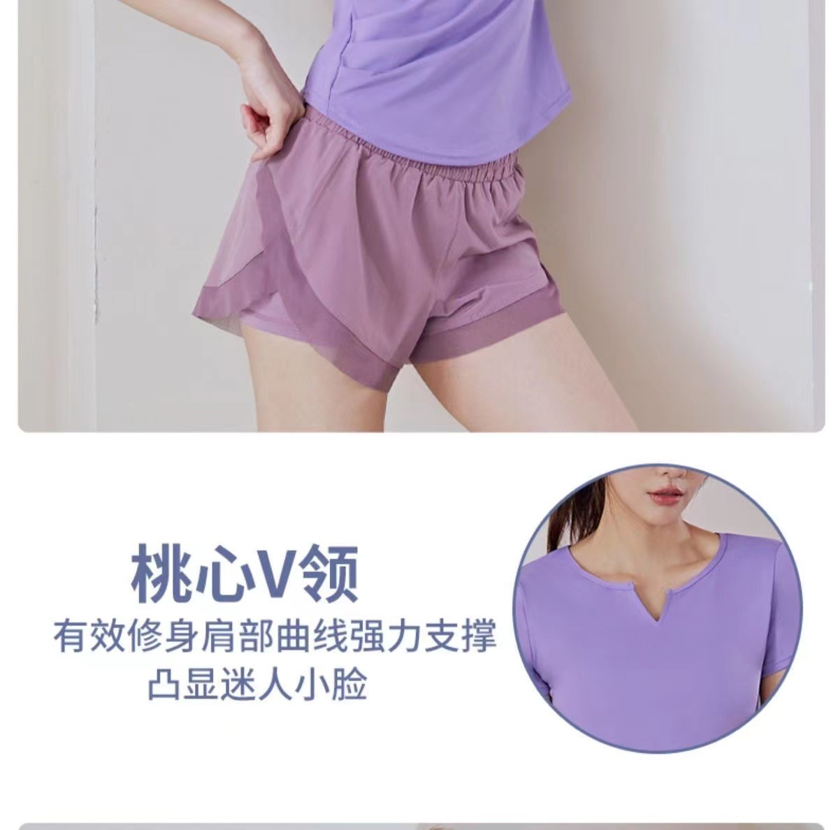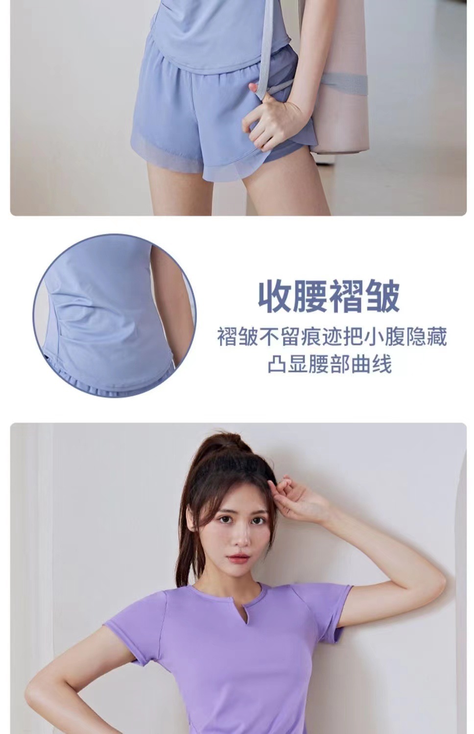 새로운 작은 V-벨 요가 의류 최고 여성 여름 달리기 빠른 건조 스포츠 티셔츠 타이트 허리 피트니스 필라테 짧은 소매스토어 가기