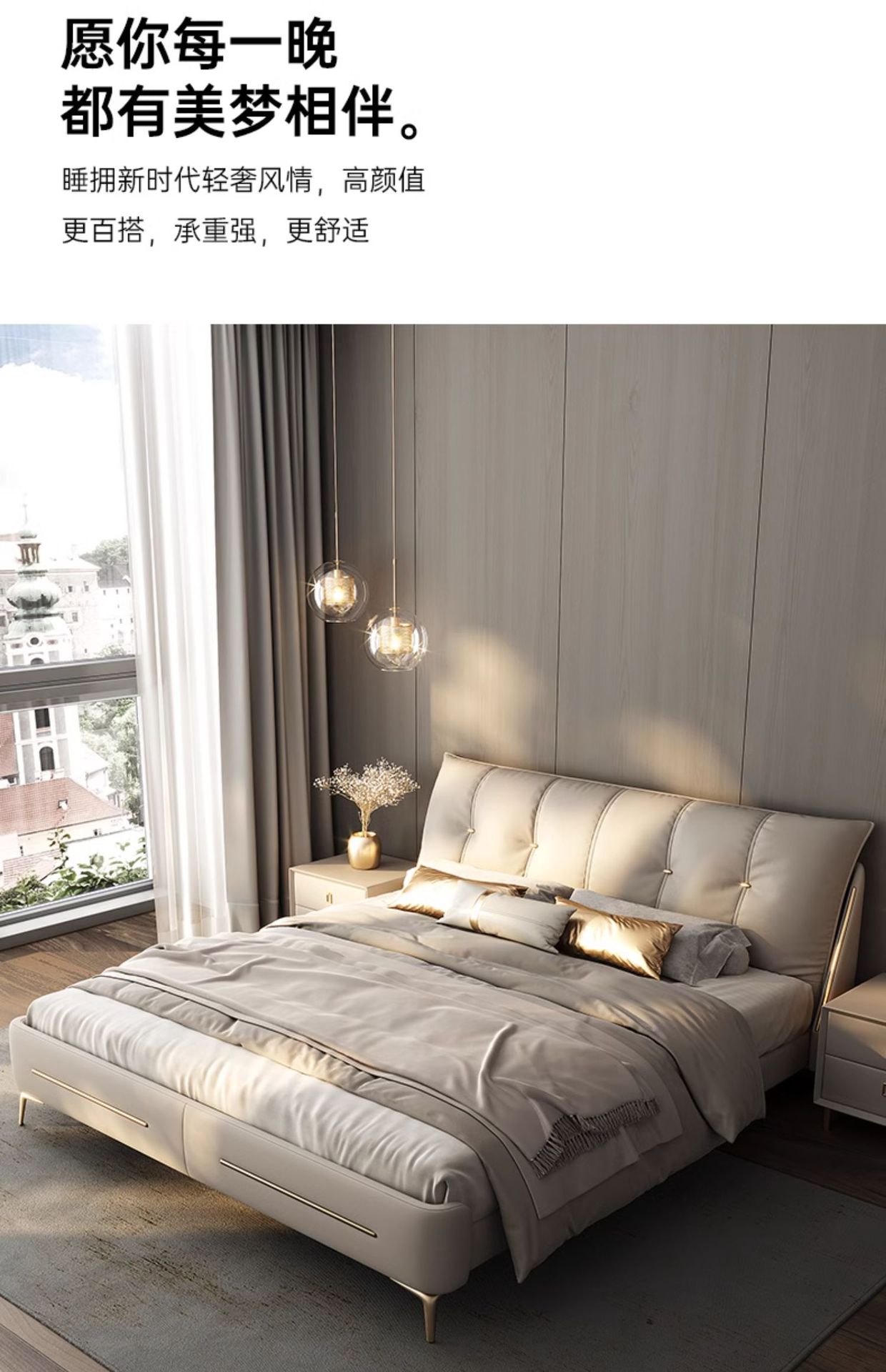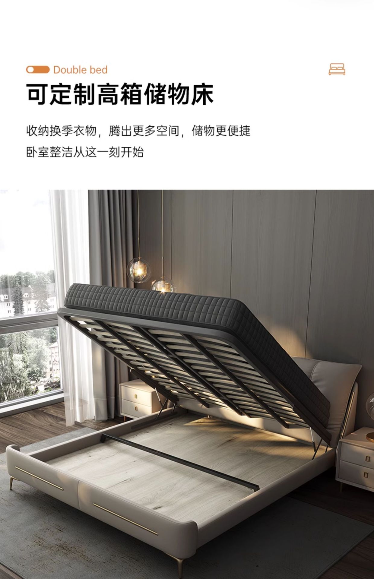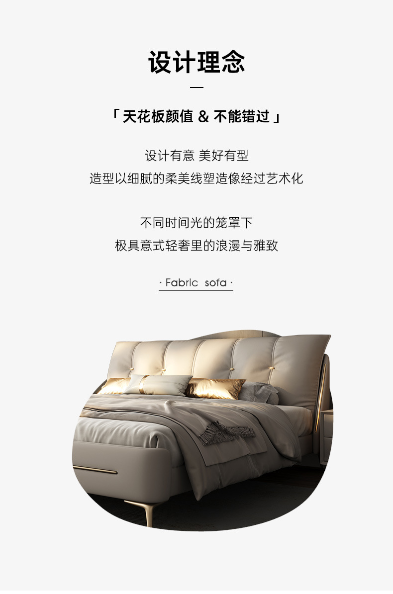 현대 간단한 이탈리아 빛 고급 침대 럭셔리 웨딩 룸 소프트 백 레스트 인터넷 인기있는 스토리지 가죽 침대 마스터 침실 하이 엔드 분위기스토어 가기