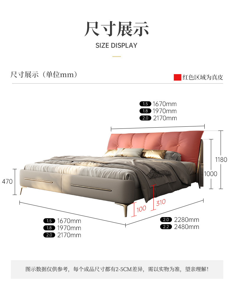 • 가죽 침대 2 캐비닛 5 성급 라텍스 스프링 매트리스