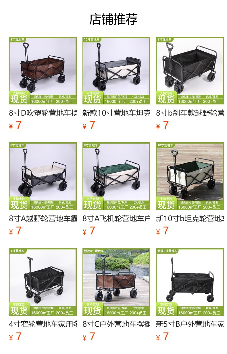 8 인치 좁은 휠 접이식 캠퍼 대용량 고부하 베어링 스톨 트레일러 접이식 테이블 차양 손 카트