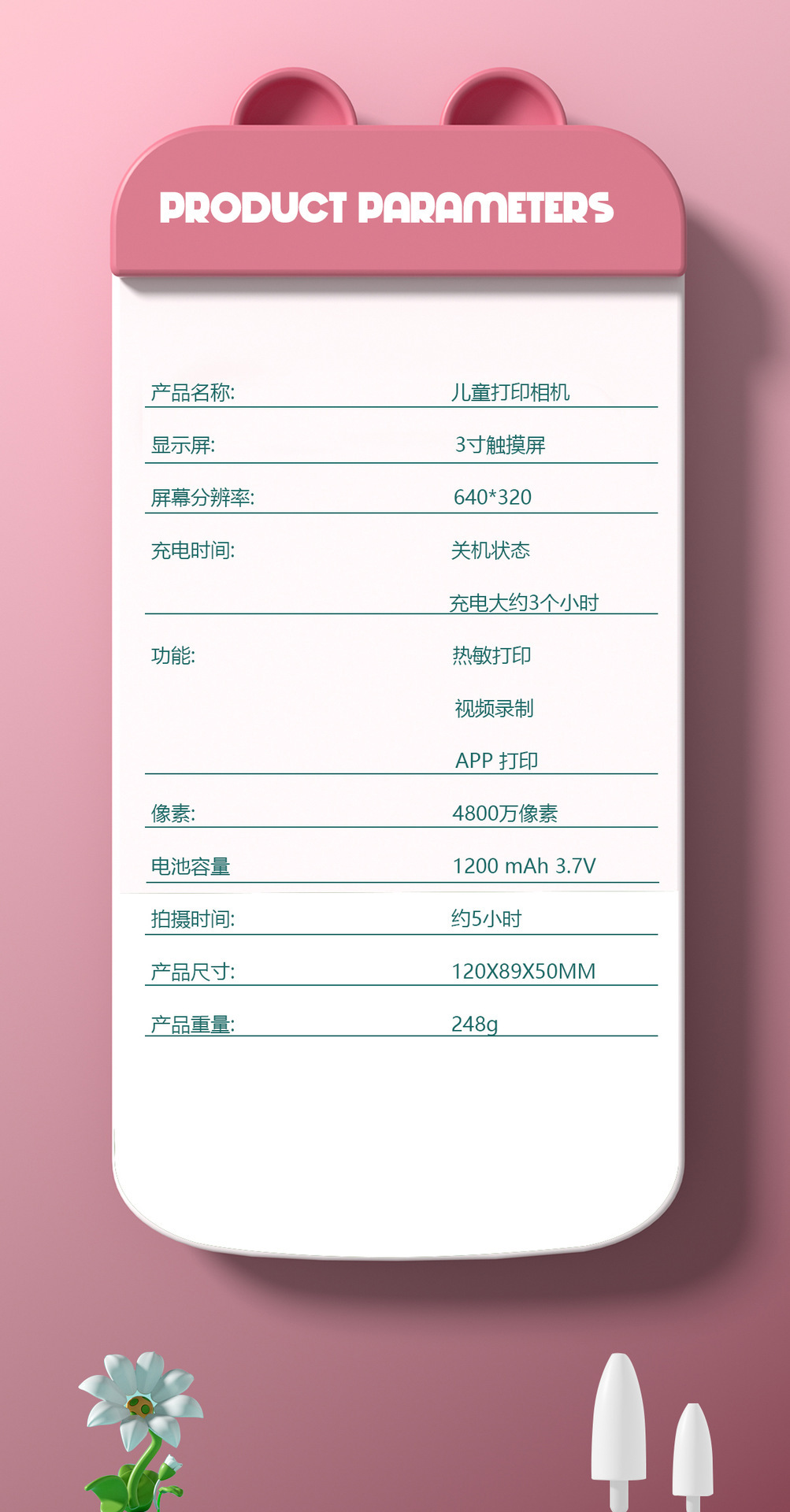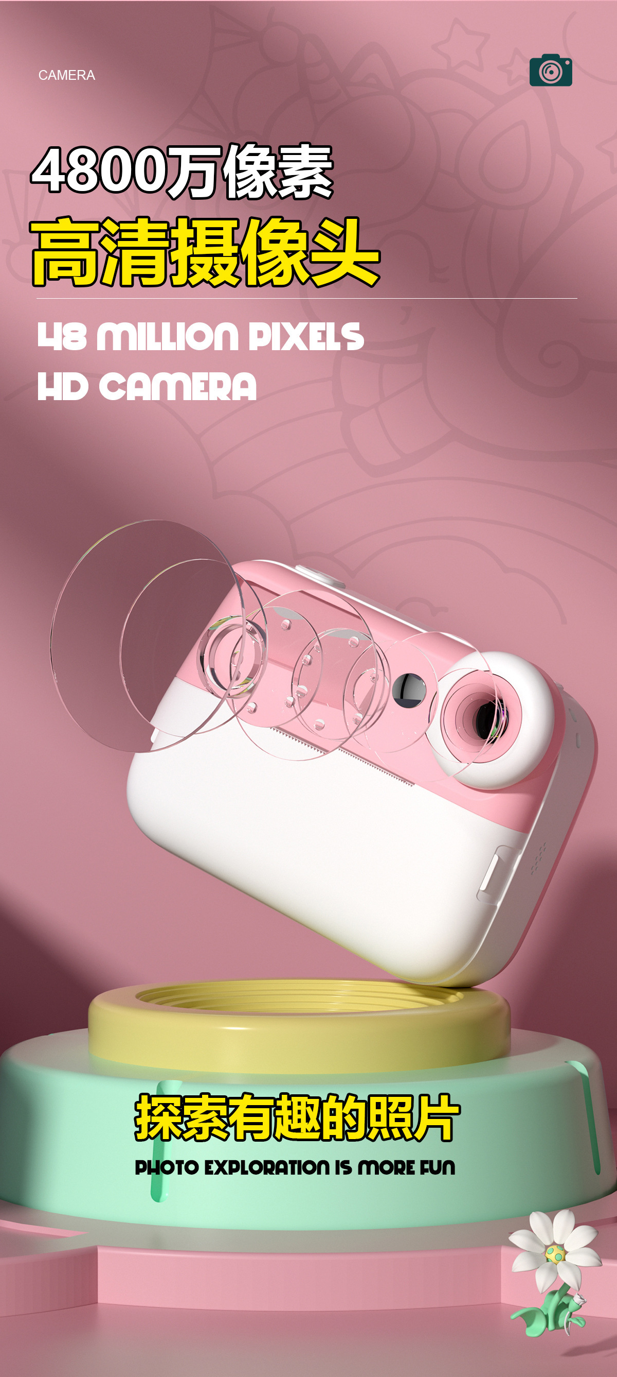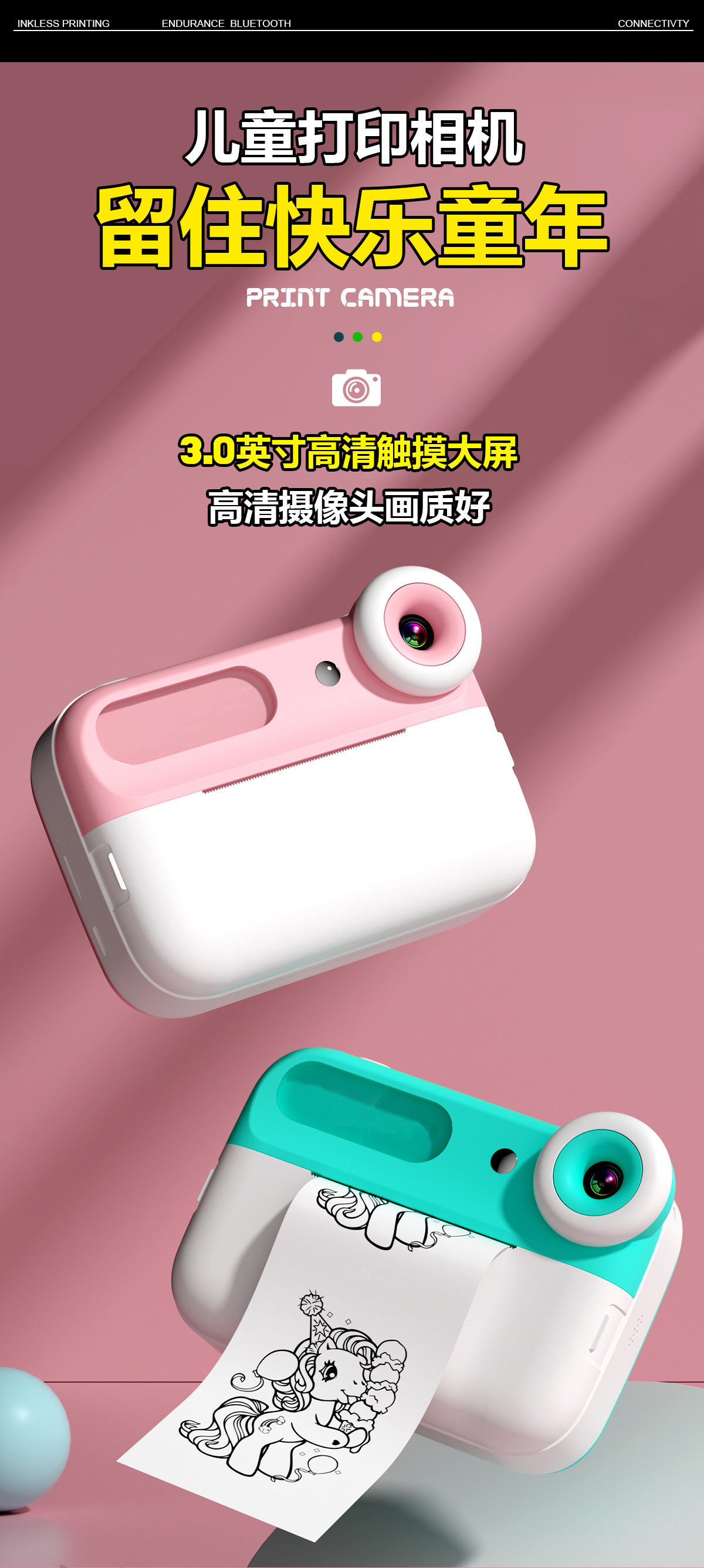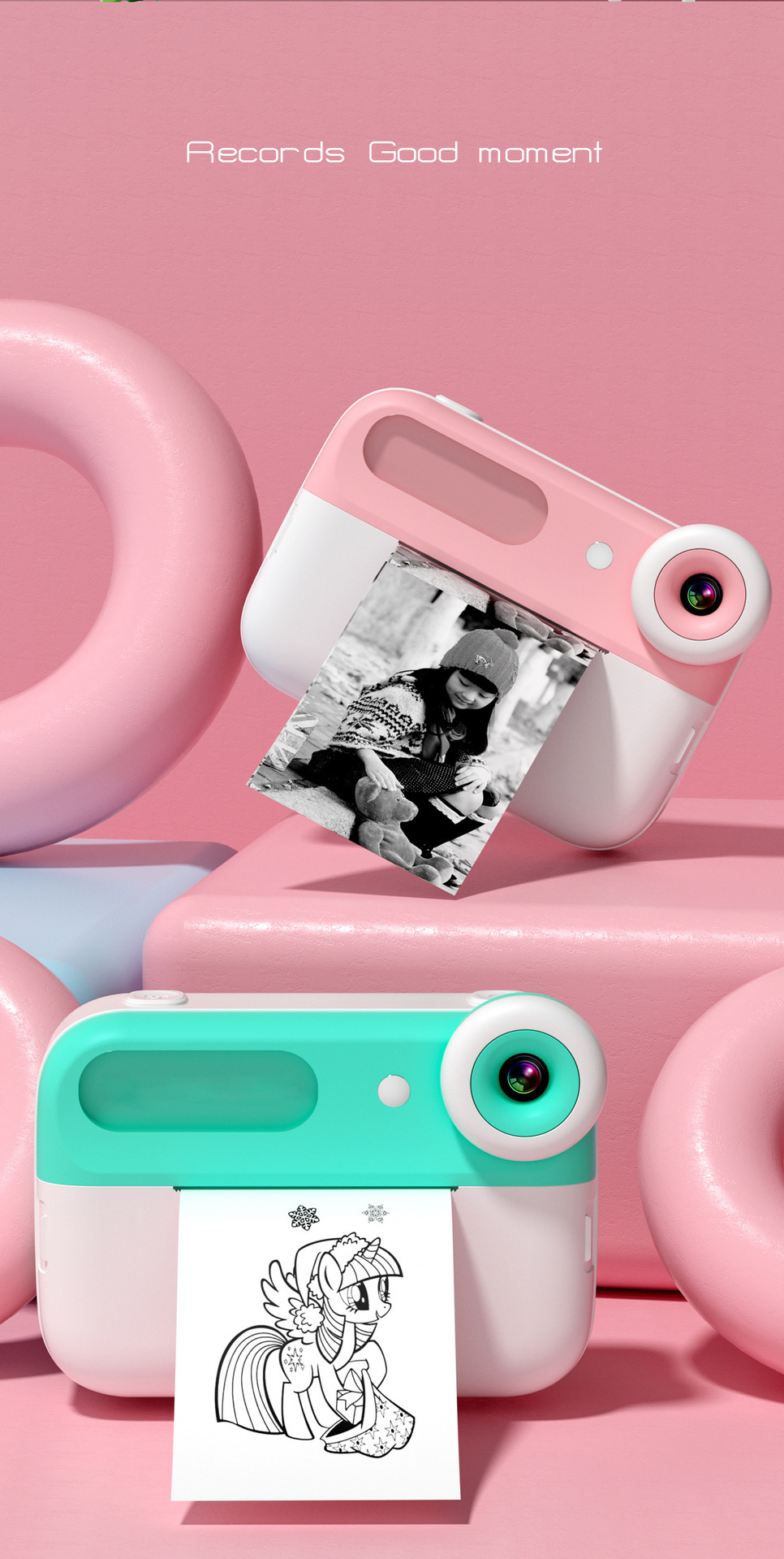 • 핑크 카메라 프린트 롤 종이 * 3 끈 [메모리 없음]