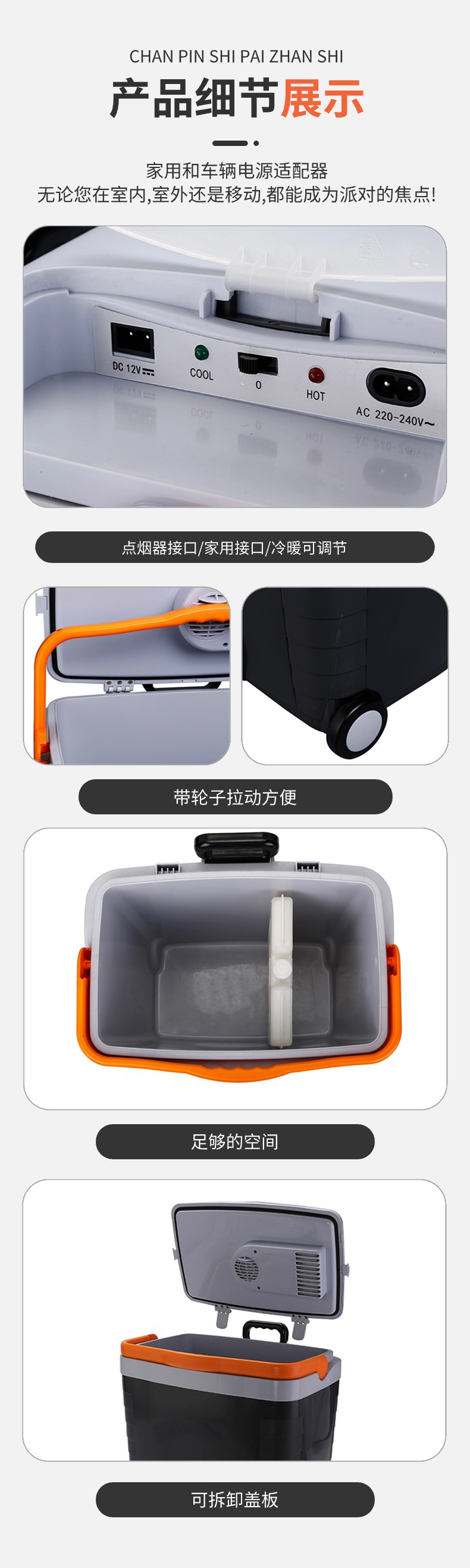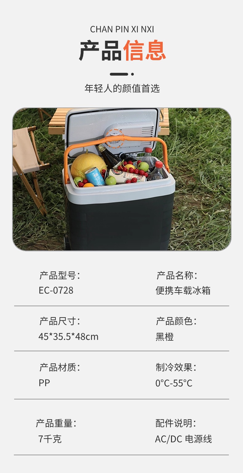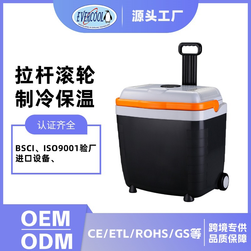 야외용 차량 냉장고, 차량 및 가정 겸용 28L 반도체 캠핑 냉온 보온 박스, 12V 롤러 PU 폼 휴대용스토어 가기