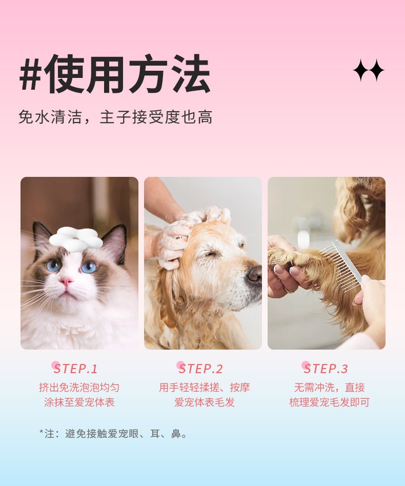 애완동물 무세척 폼 고양이 강아지 드라이 클리닝 무스 세정용품 목욕 샴푸 샤워젤 도매 탈취제스토어 가기