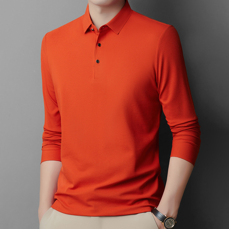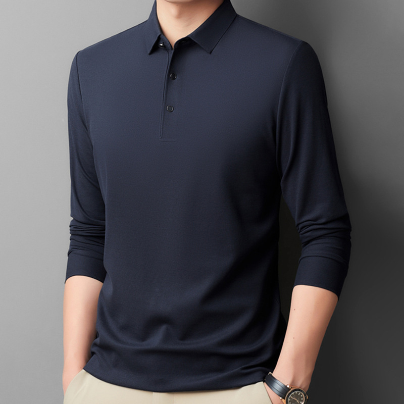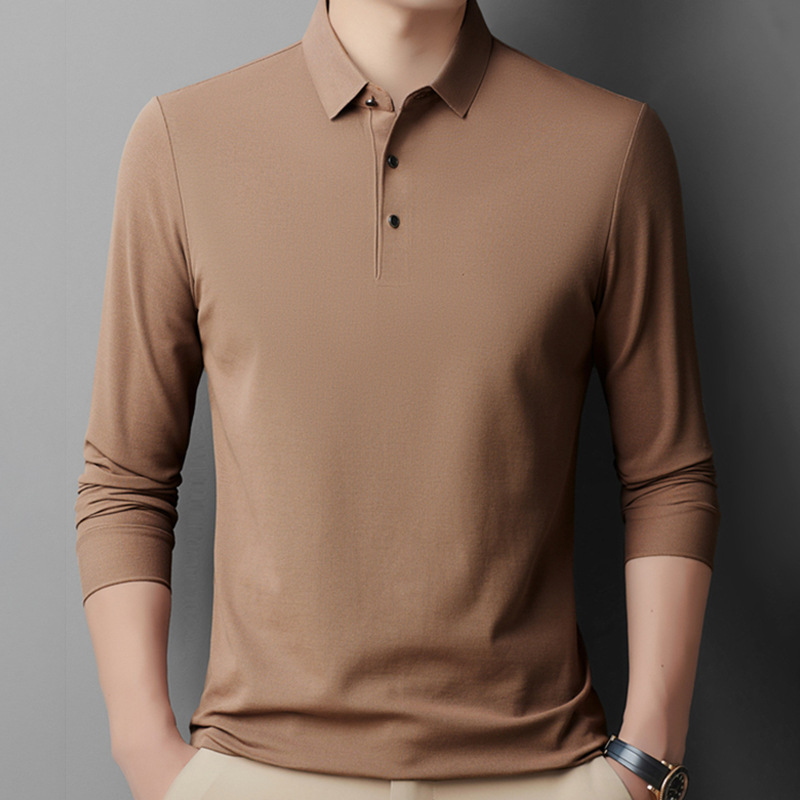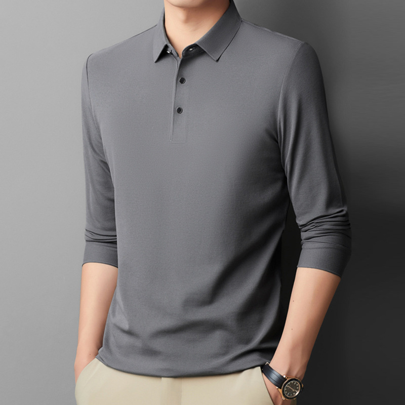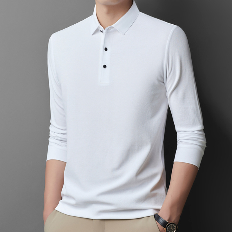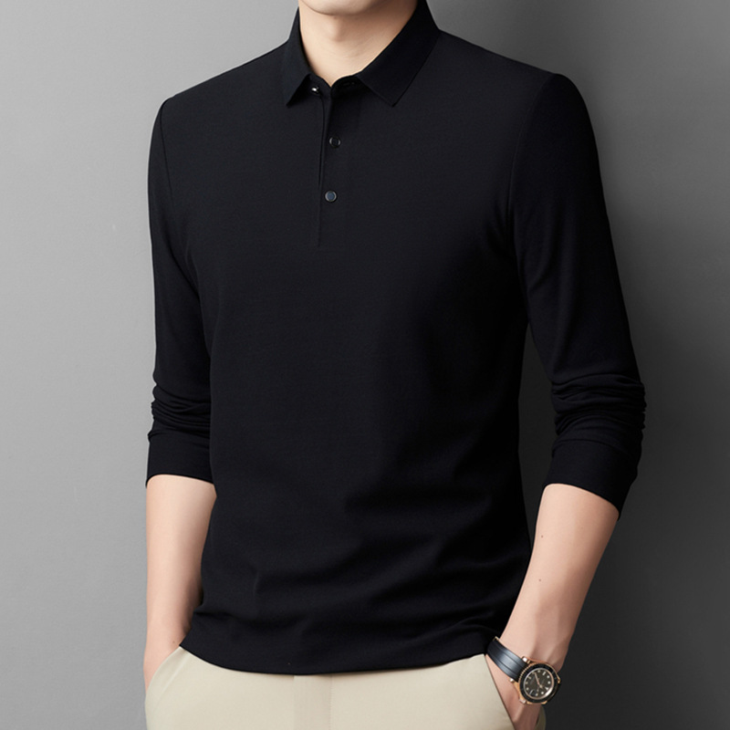 남성용 긴팔 폴로 셔츠 피케 코튼 가을 티셔츠 비즈니스 캐주얼 라펠 트렌디 얇은 스탠드 칼라 긴팔 티셔츠