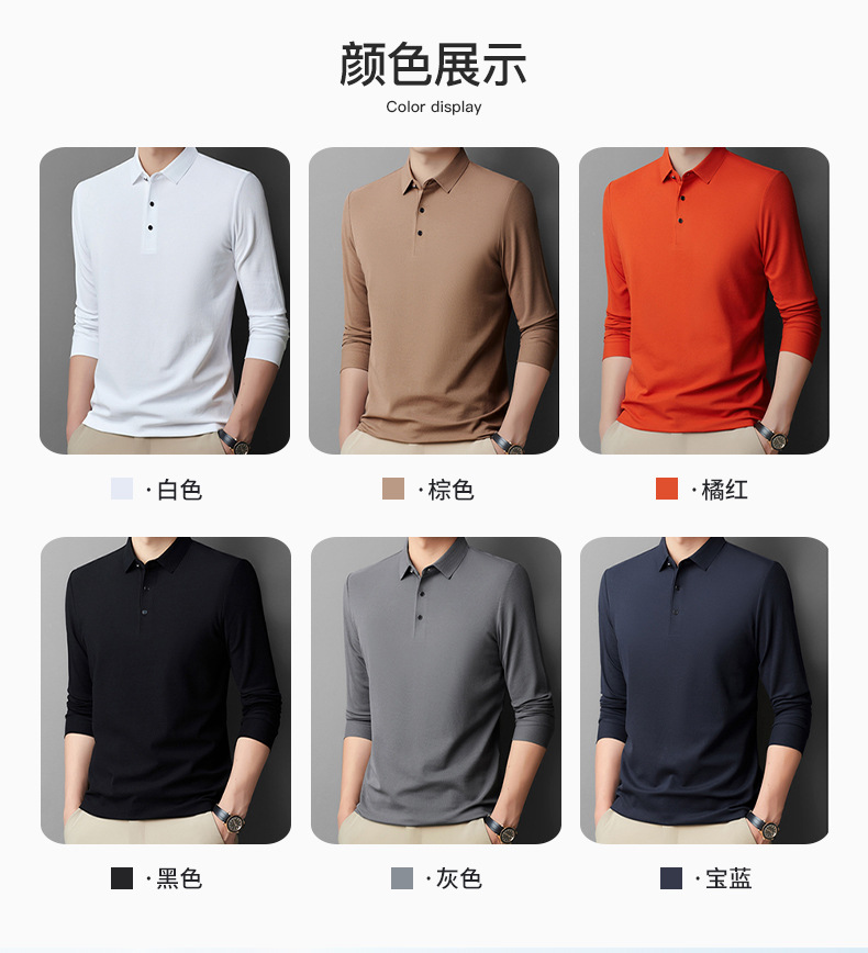 남성용 긴팔 폴로 셔츠 피케 코튼 가을 티셔츠 비즈니스 캐주얼 라펠 트렌디 얇은 스탠드 칼라 긴팔 티셔츠스토어 가기