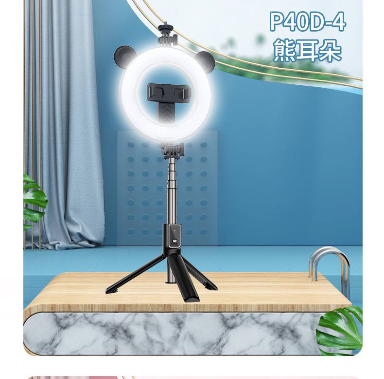 • P40D-4 베어 귀/뷰티 라이트 셀카 스틱/블랙