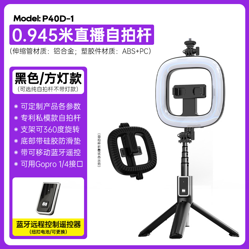 • P40D-1 스퀘어/뷰티 라이트 셀카 스틱/블랙