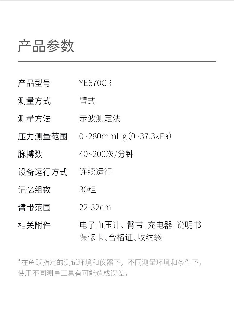 Yuyue 670CR 전자 sphygmomanometer 팔 형 고정밀 혈압 측정 기기 홈 충전 자동 sphygmomanometer스토어 가기