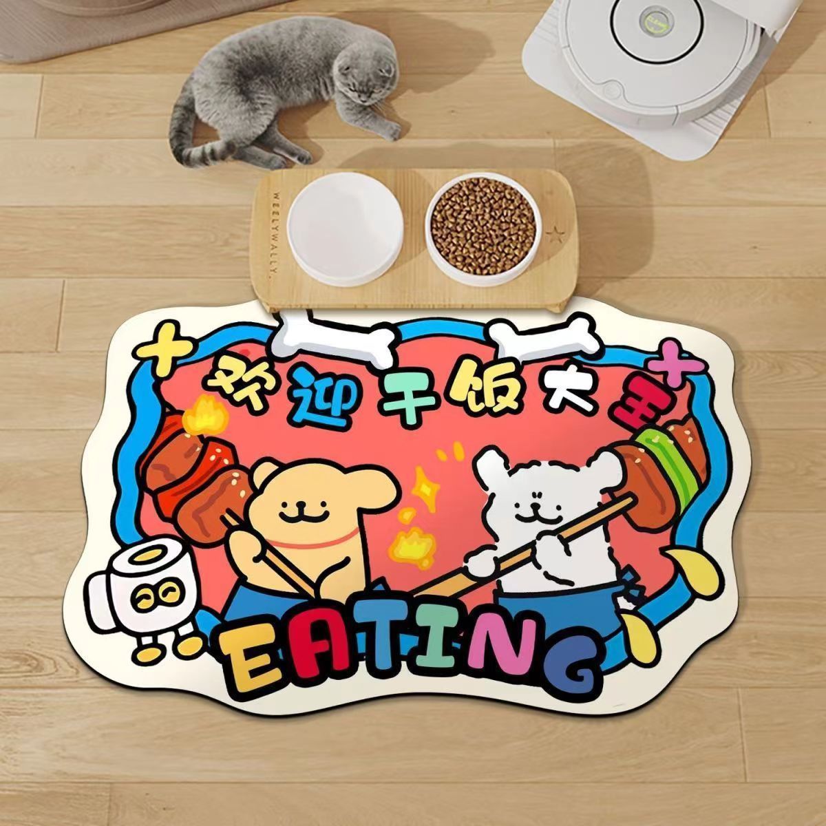 만화 고양이 개 diatom 진흙 placemat 애완 동물 흡수성 빠른 건조 장소 고양이와 개 보편적 인 미끄럼 방지 좋은 관리 매트스토어 가기