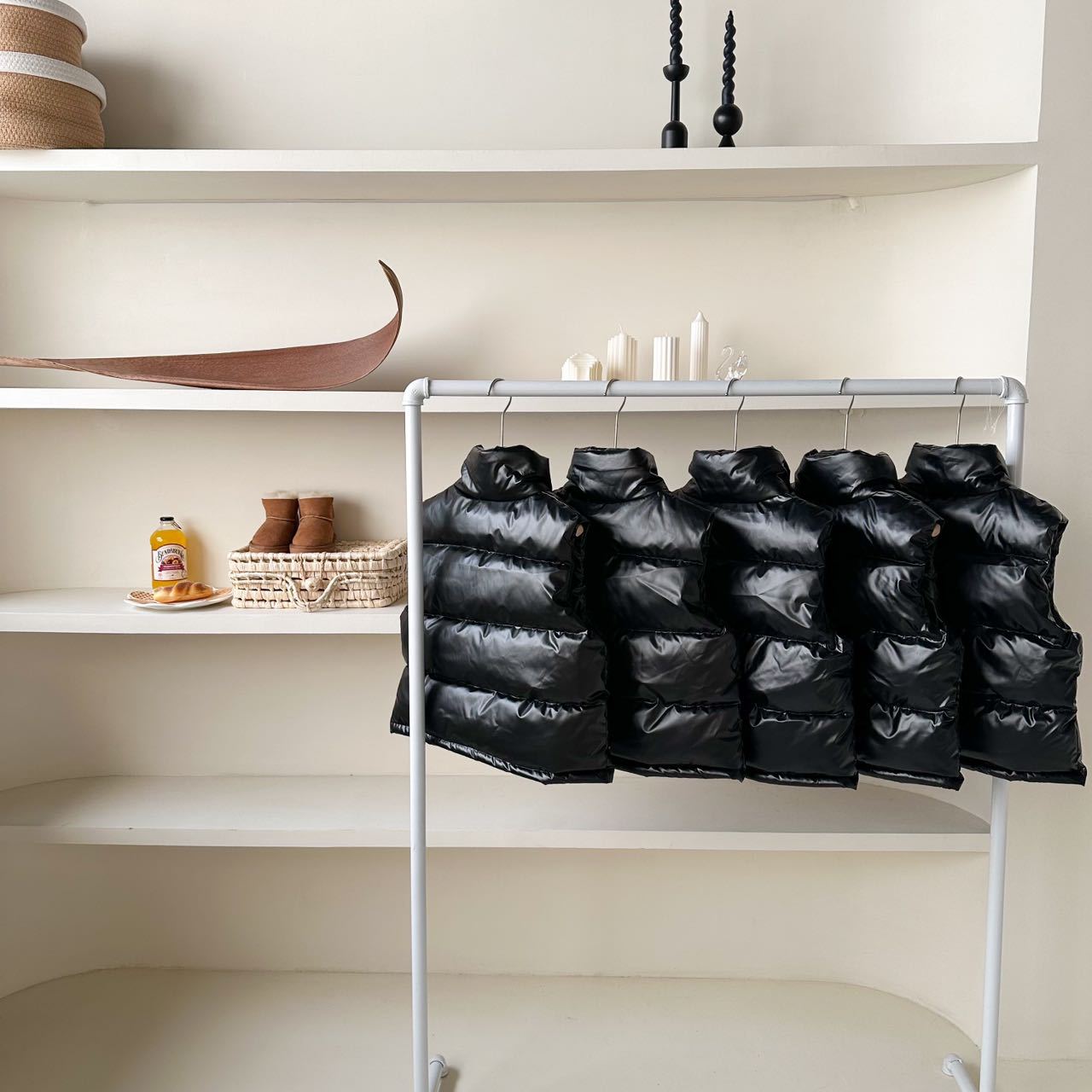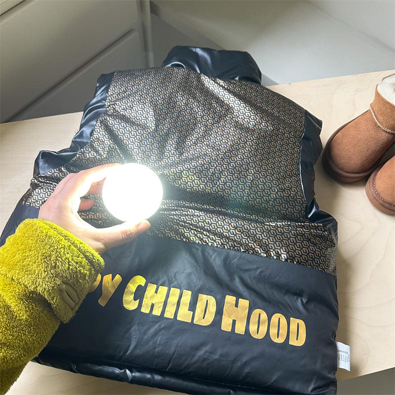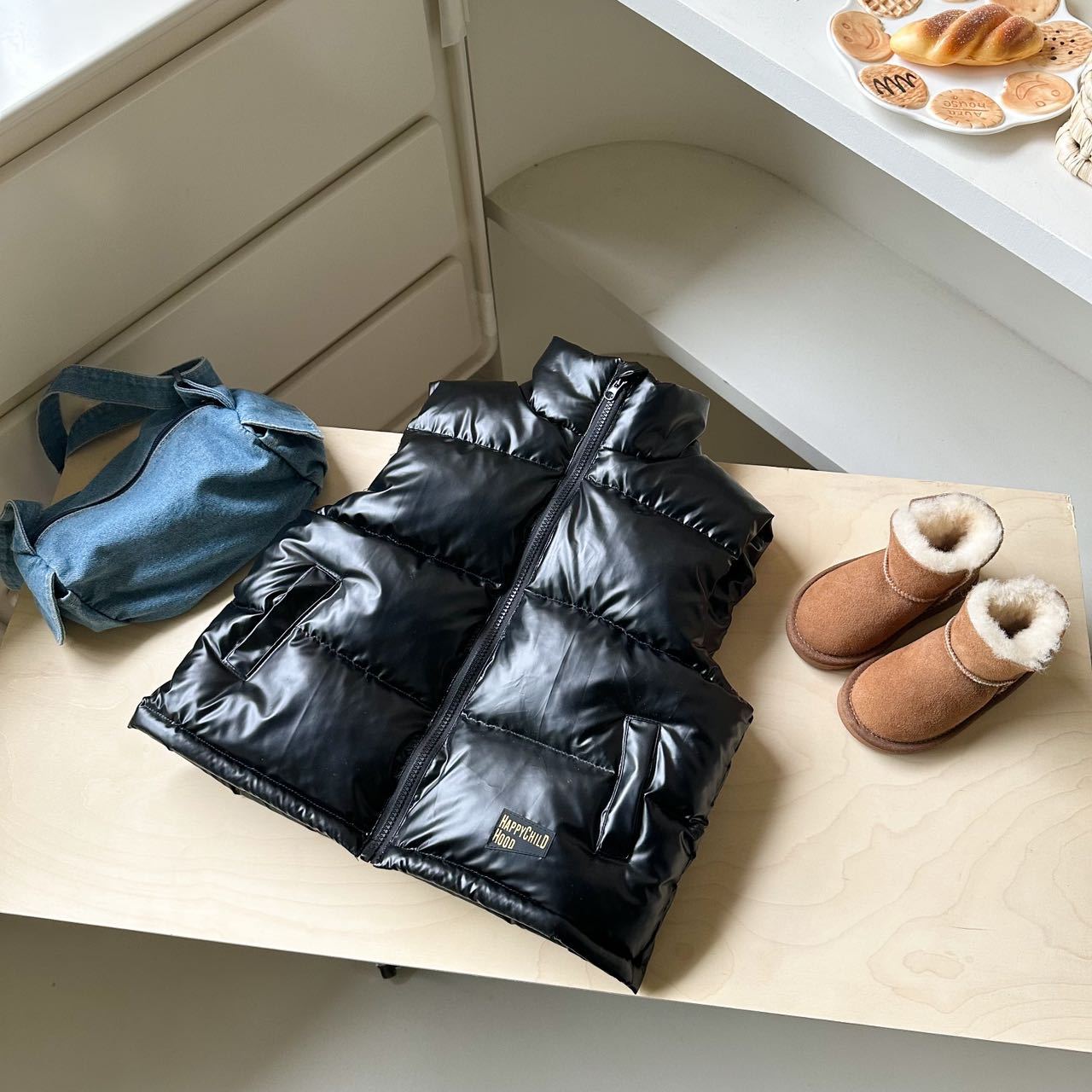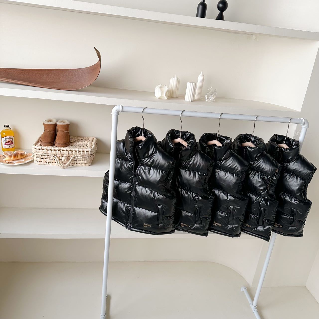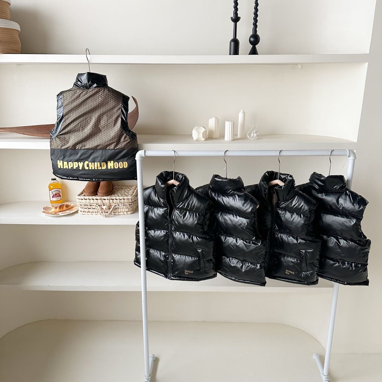 가을과 겨울 어린이 블랙 골드 다운 코튼 조끼 새로운 스타일 소년 수직 칼라 외부 조끼 착용 여성 중 대형 어린이 두꺼운 조끼스토어 가기
