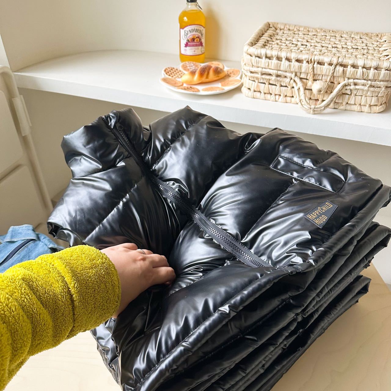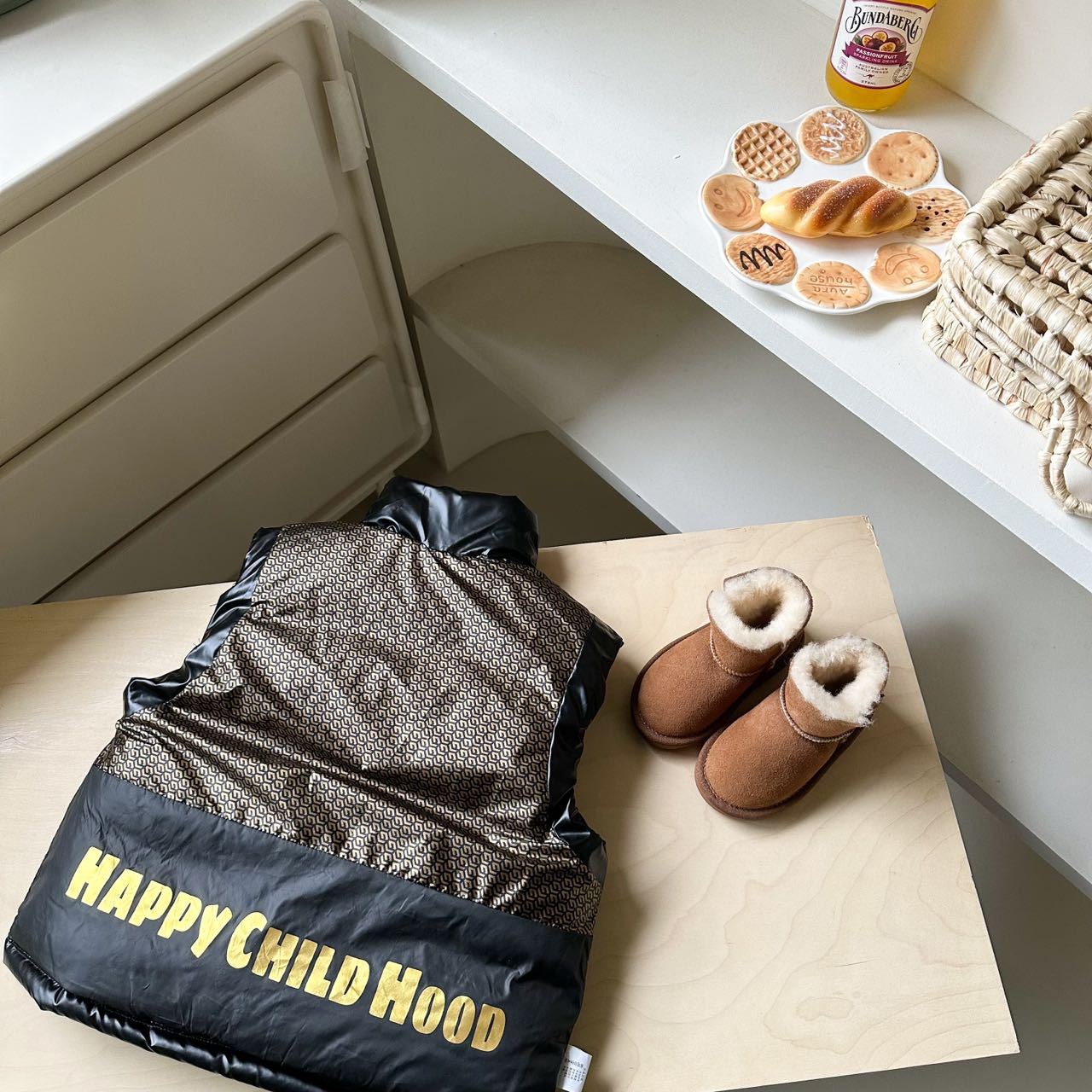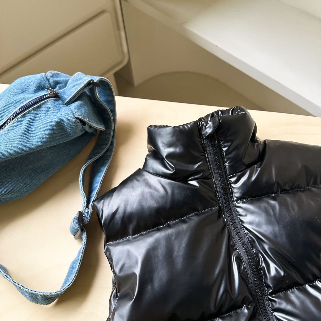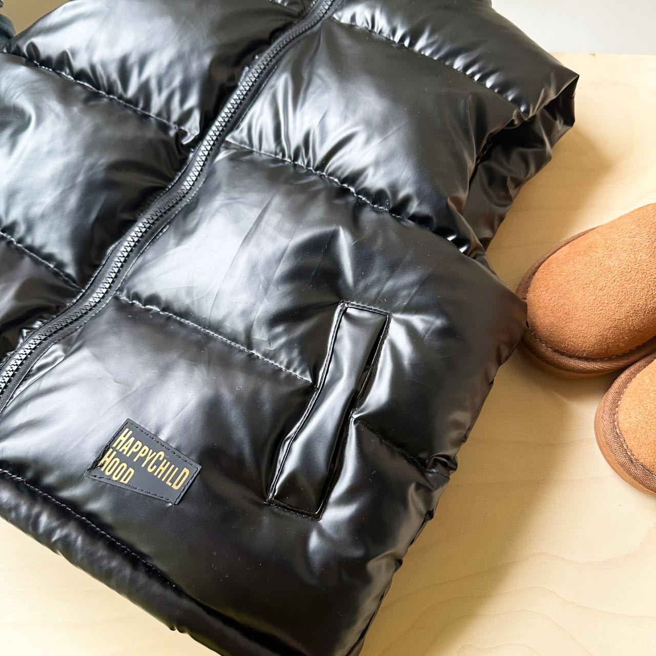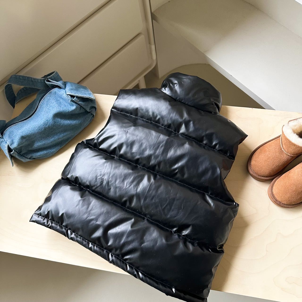 가을과 겨울 어린이 블랙 골드 다운 코튼 조끼 새로운 스타일 소년 수직 칼라 외부 조끼 착용 여성 중 대형 어린이 두꺼운 조끼스토어 가기