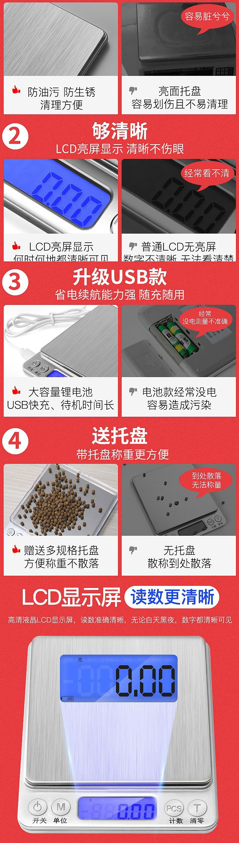 • 3 사용 모델 업그레이드 및 증가-고정밀 500g/0.01g 2 팔레트