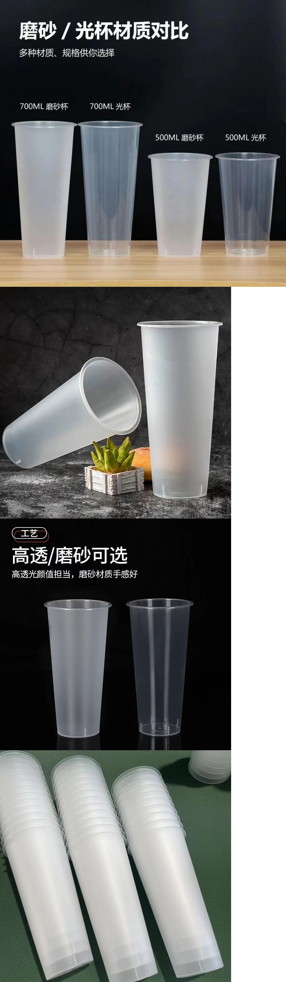 컵 일회용 투명 우유 차 컵 플라스틱 컵 700cc 젖빛 90 플라스틱 맞춤형 로고 주스 컵 뚜껑