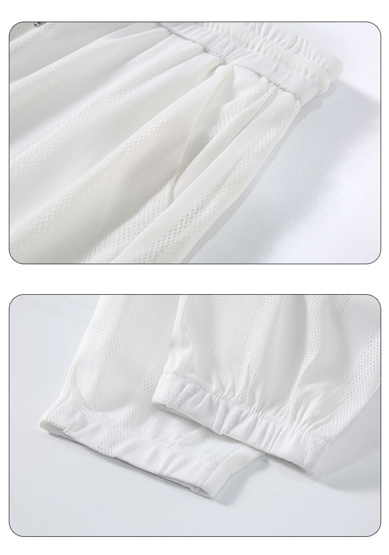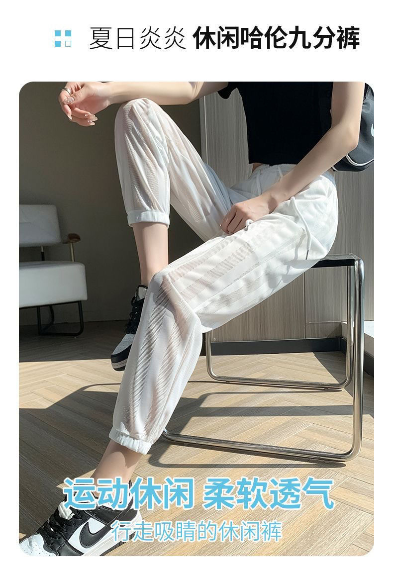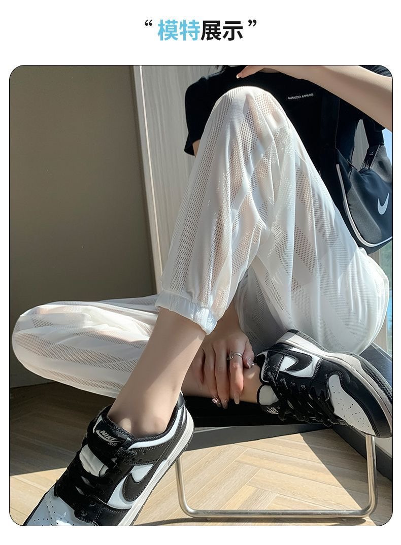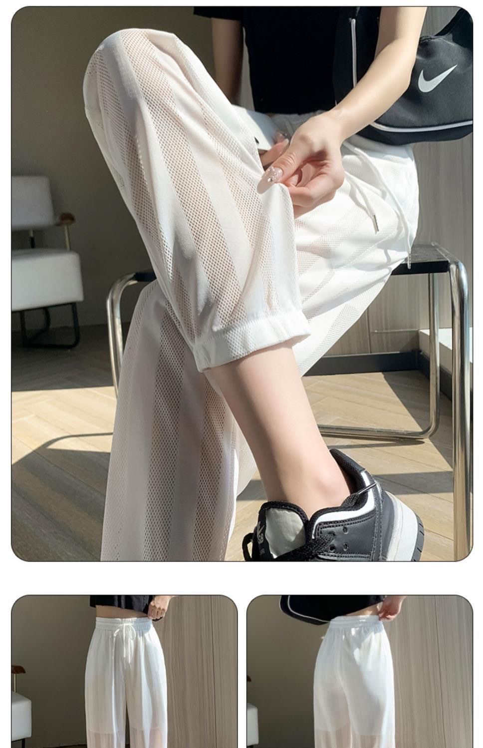 메쉬 와이드 다리 바지 여성용 여름 얇은 2024 아이스 실크 태양 보호 쿨 쉬폰 스플릿 스트레이트 캐주얼 바지