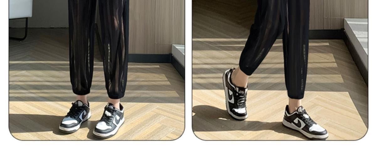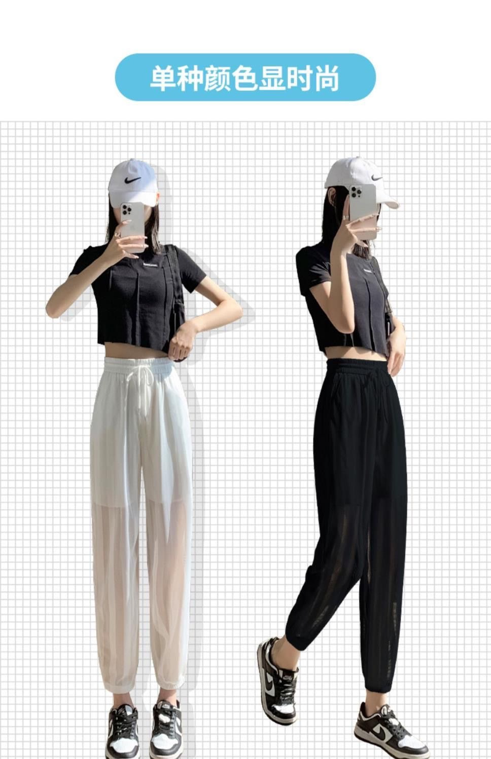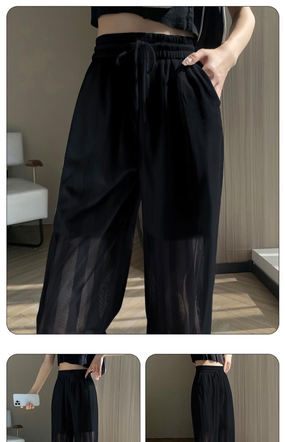 메쉬 와이드 다리 바지 여성용 여름 얇은 2024 아이스 실크 태양 보호 쿨 쉬폰 스플릿 스트레이트 캐주얼 바지스토어 가기