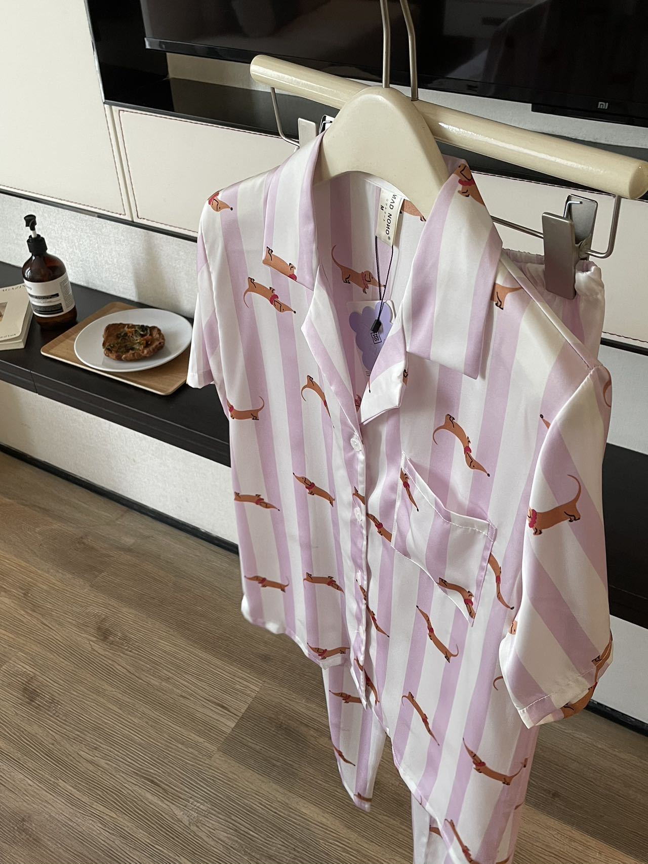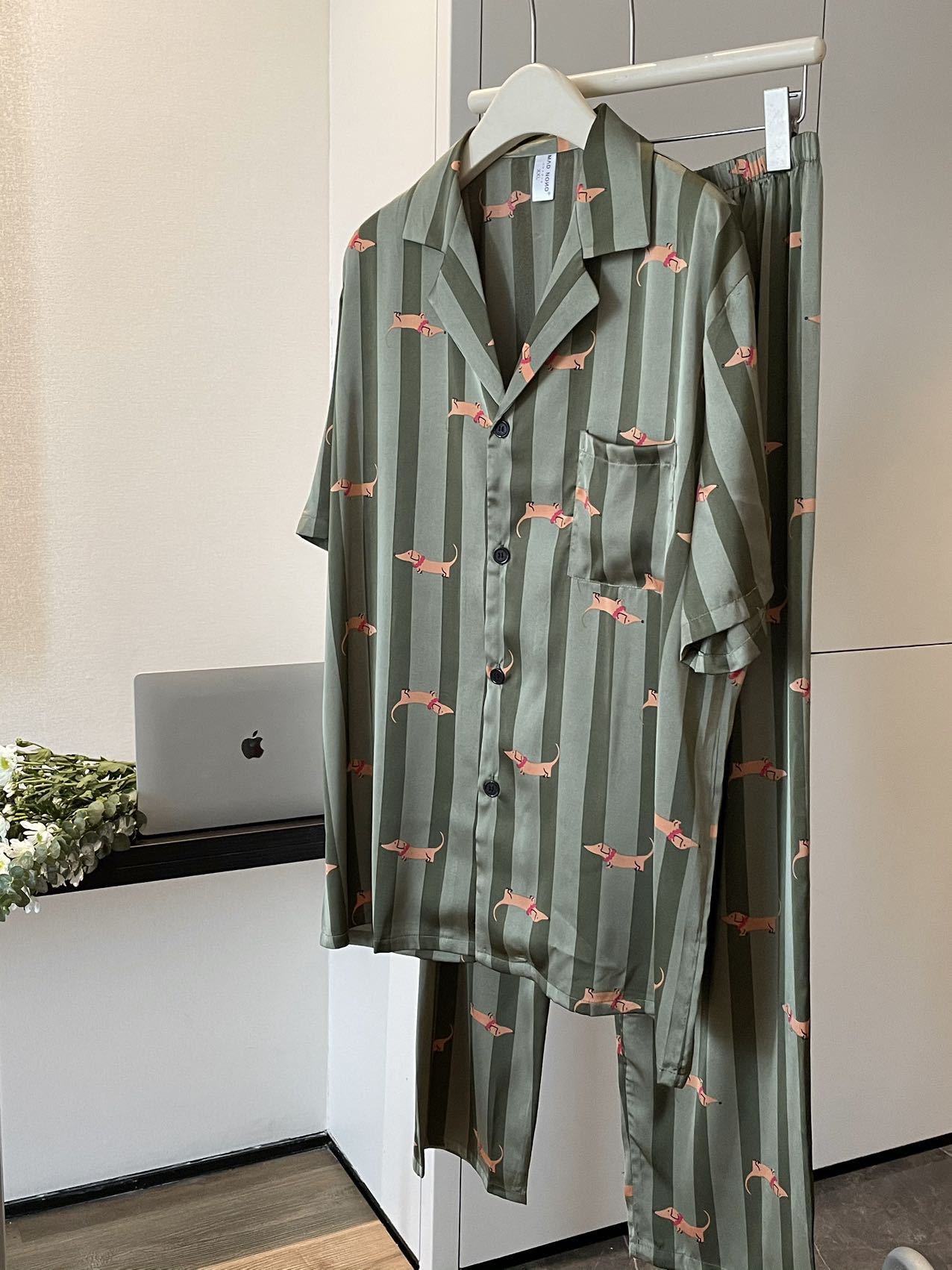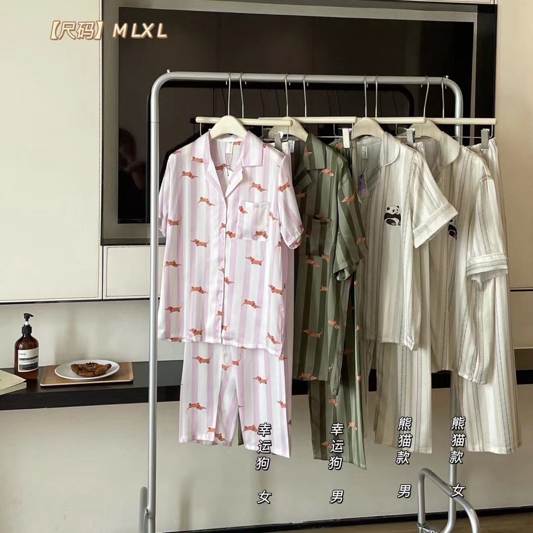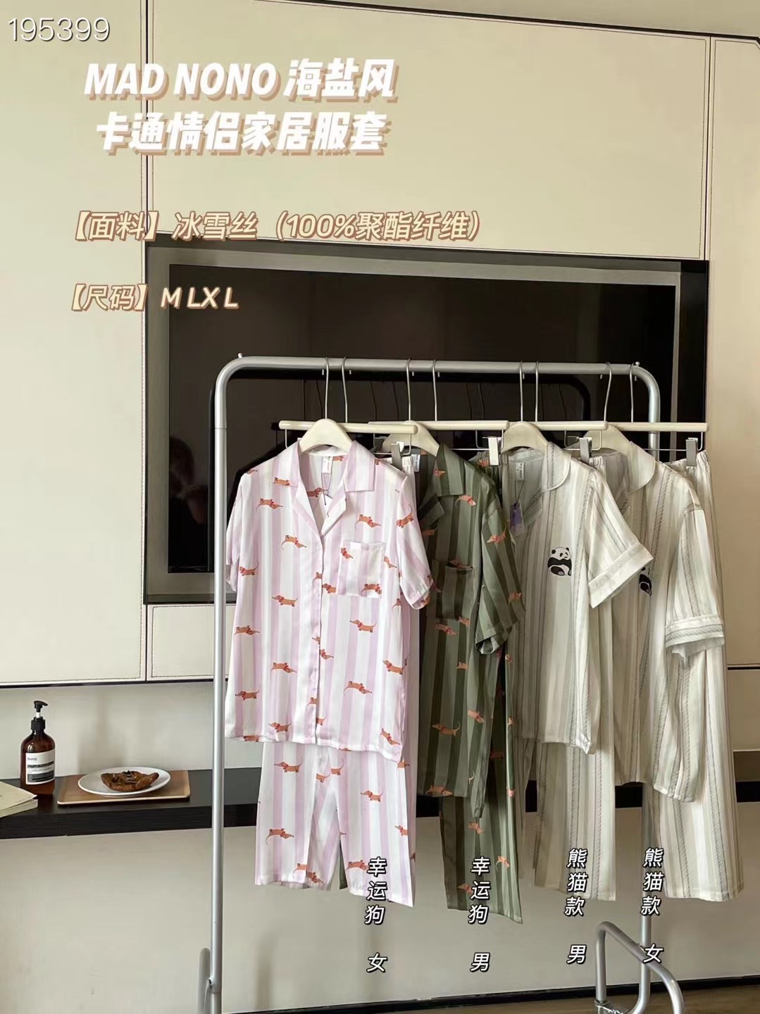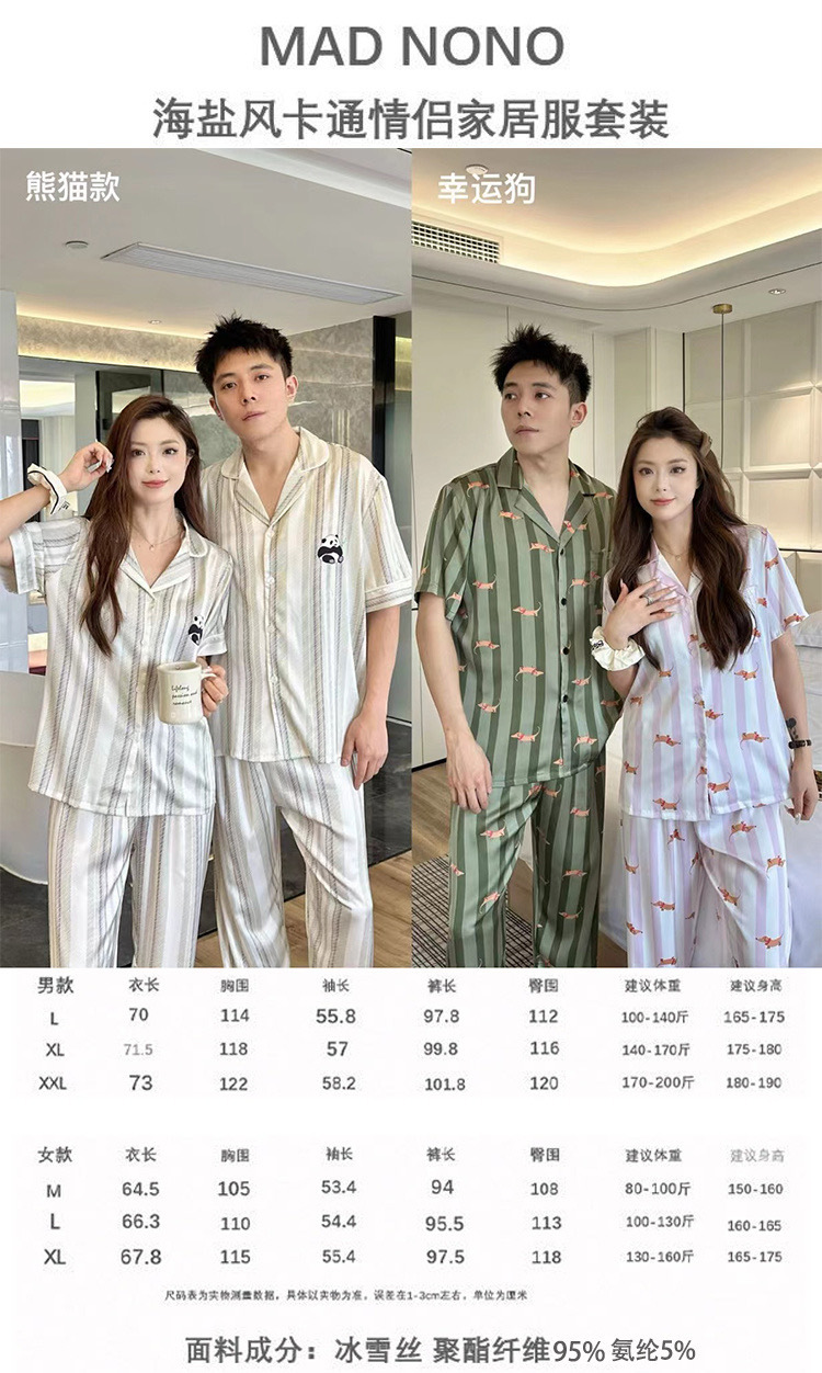 MAD NONO 바다 소금 스타일 만화 커플의 홈 의류 세트 짧은 소매 바지 경량 시원한 여름 잠옷스토어 가기