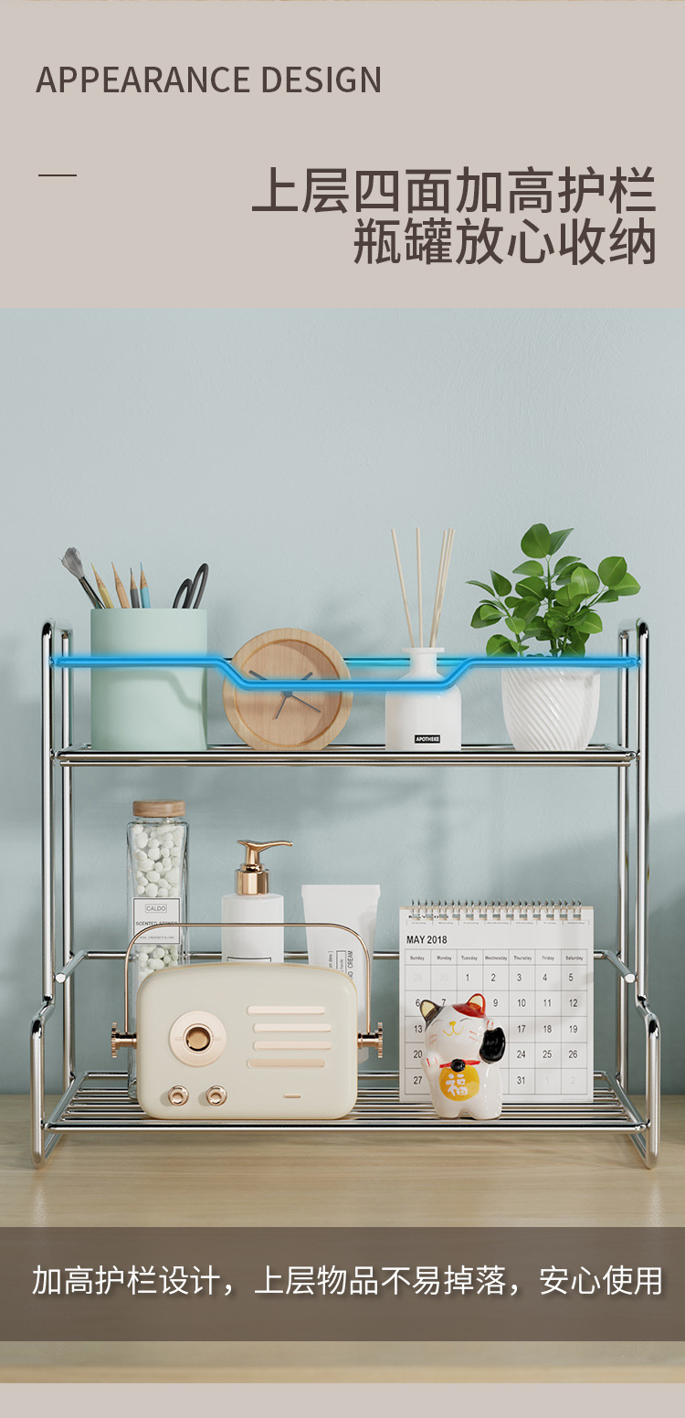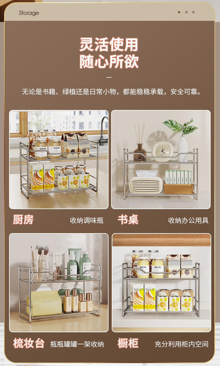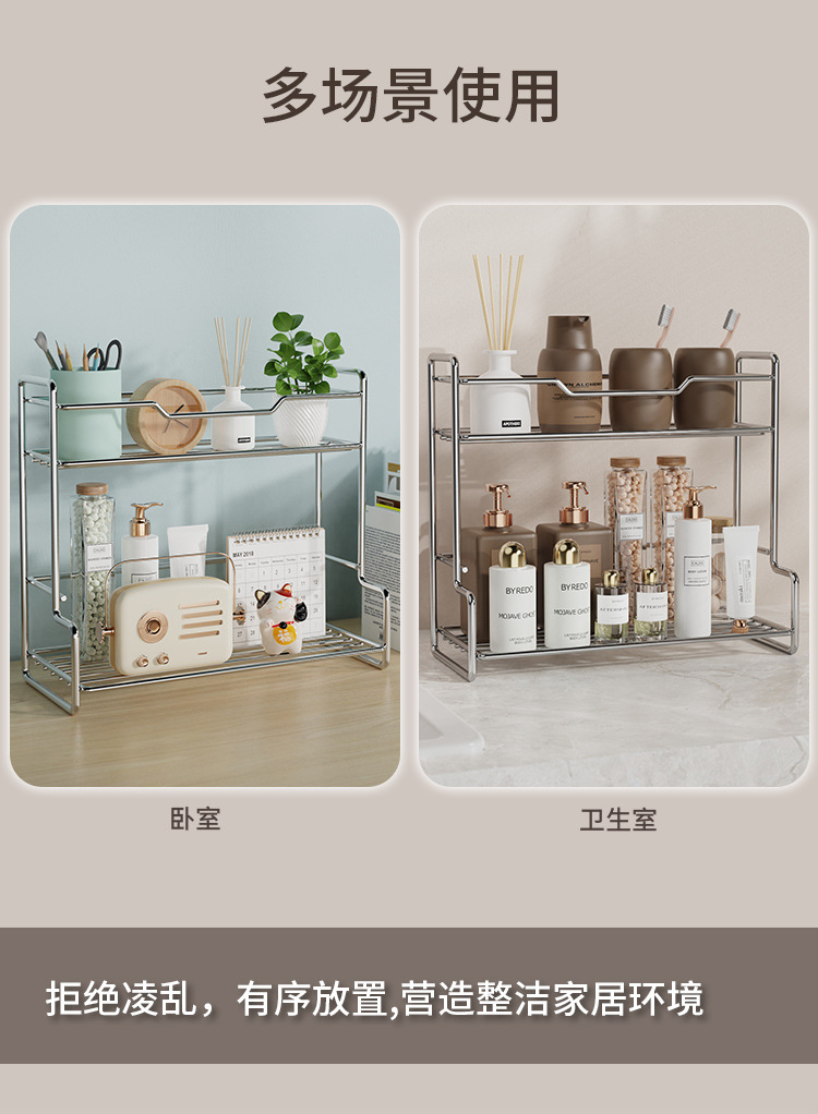 국경 간 스테인레스 스틸 주방 2 층 스토리지 랙 설치 무료 욕실 스토리지 랙 다기능 데스크탑 더블 레이어 스토리지 랙
