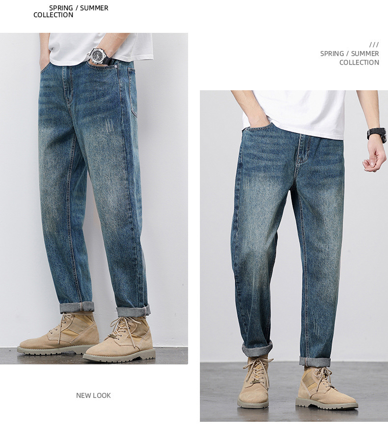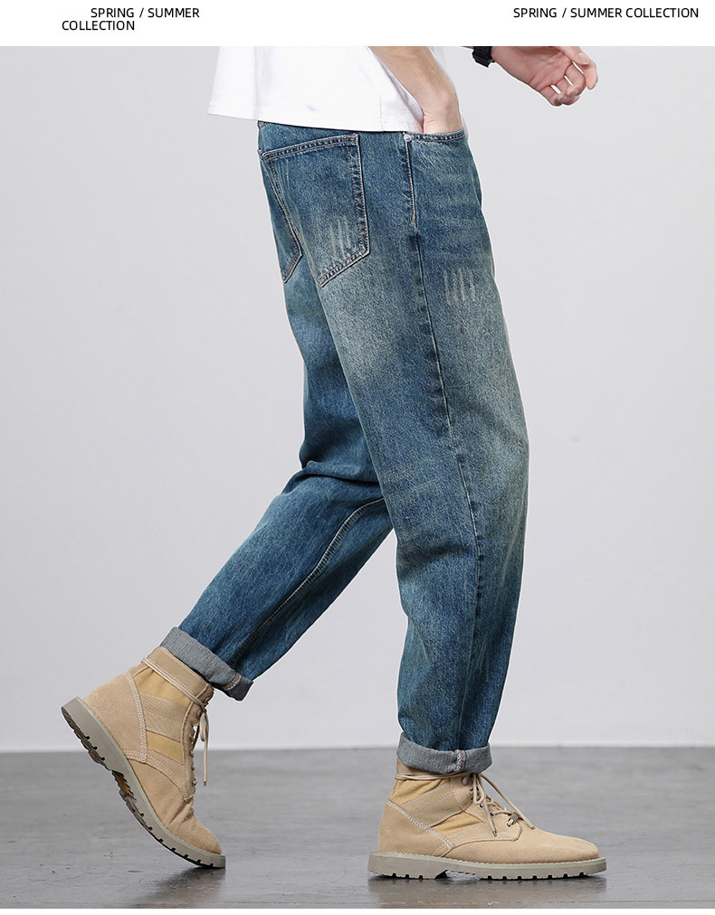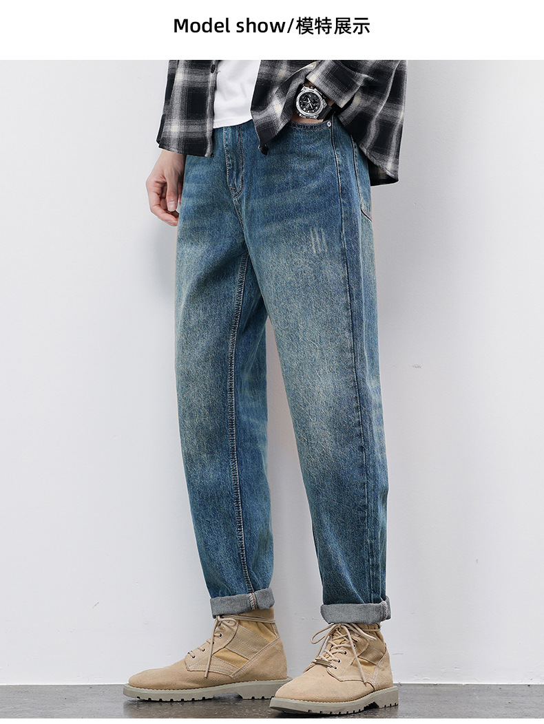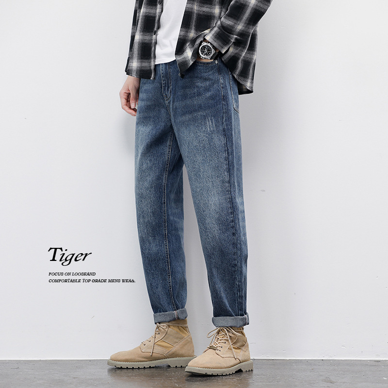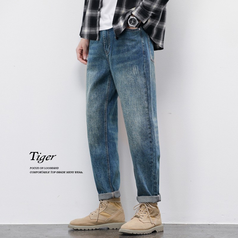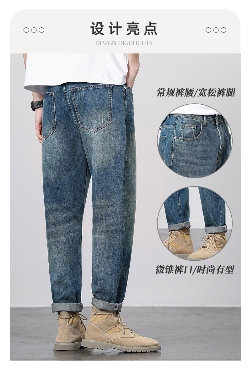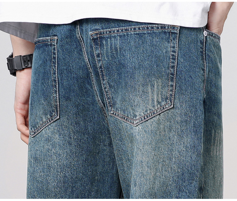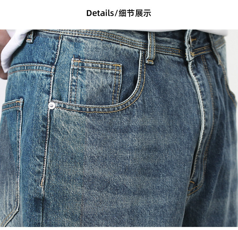 봄 2024 새로운 미국 레트로 청바지 남자 느슨한 플러스 사이즈 소년 스트레이트 긴 바지 남자 패션 브랜드스토어 가기