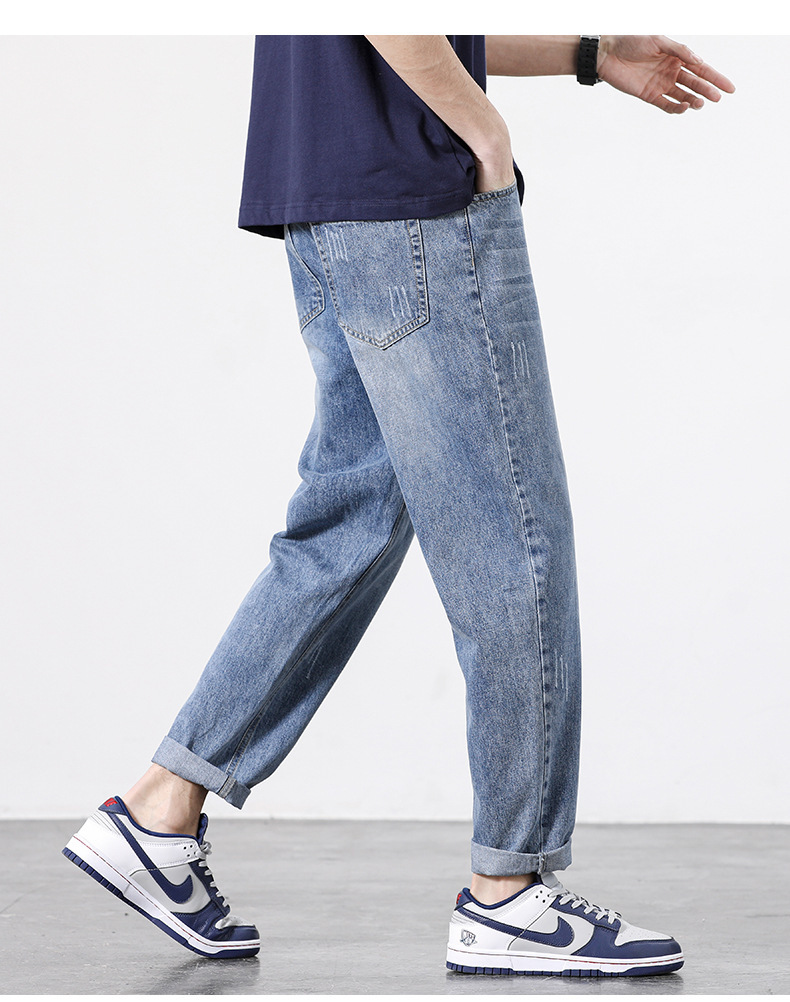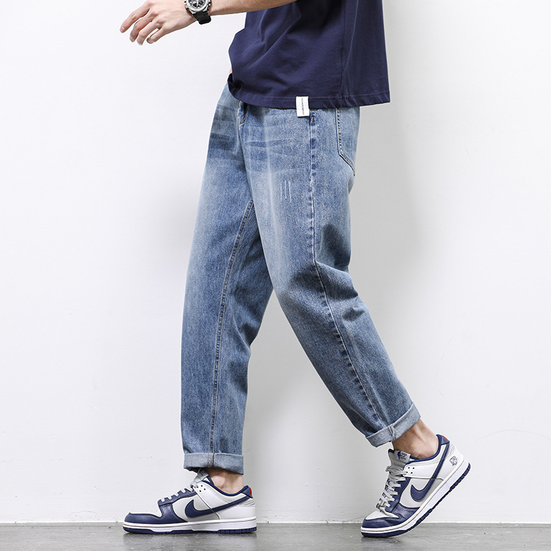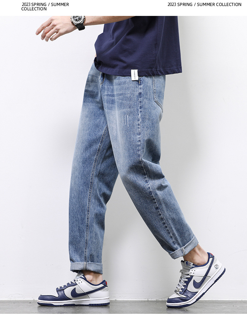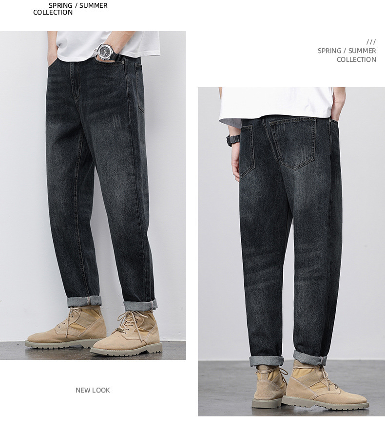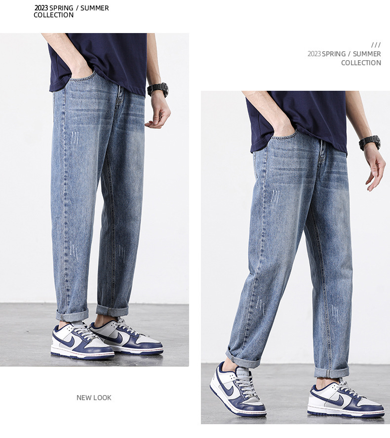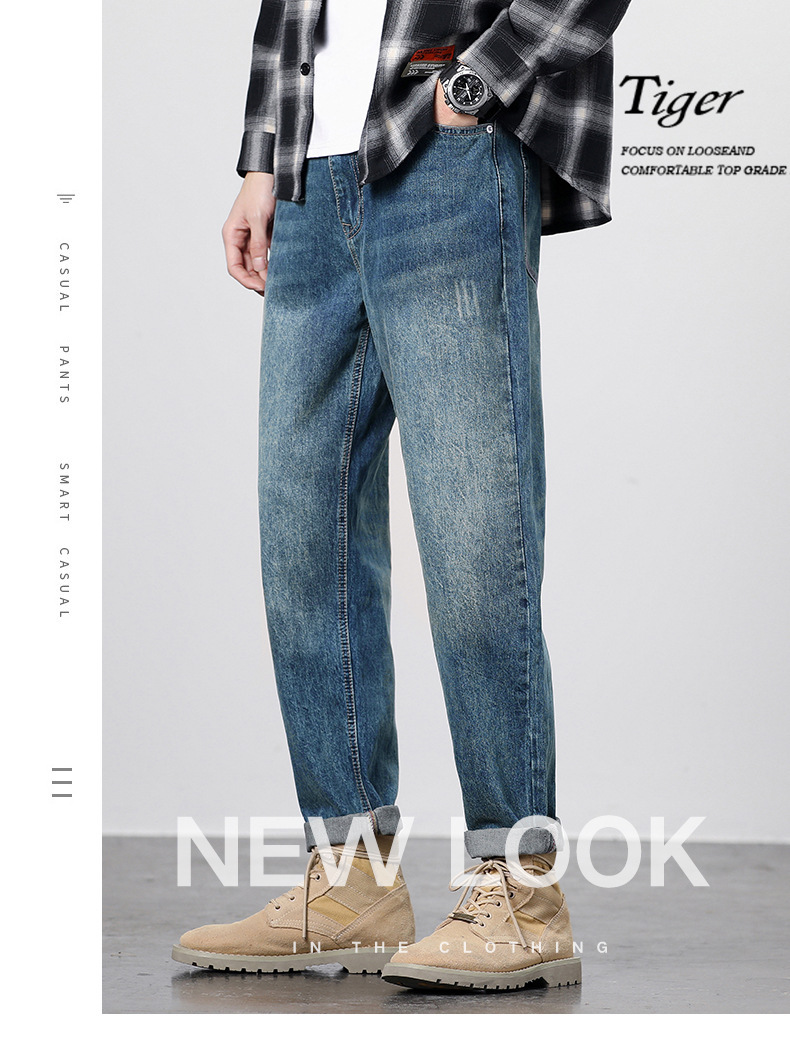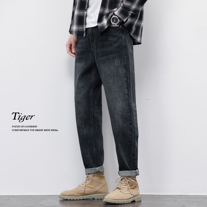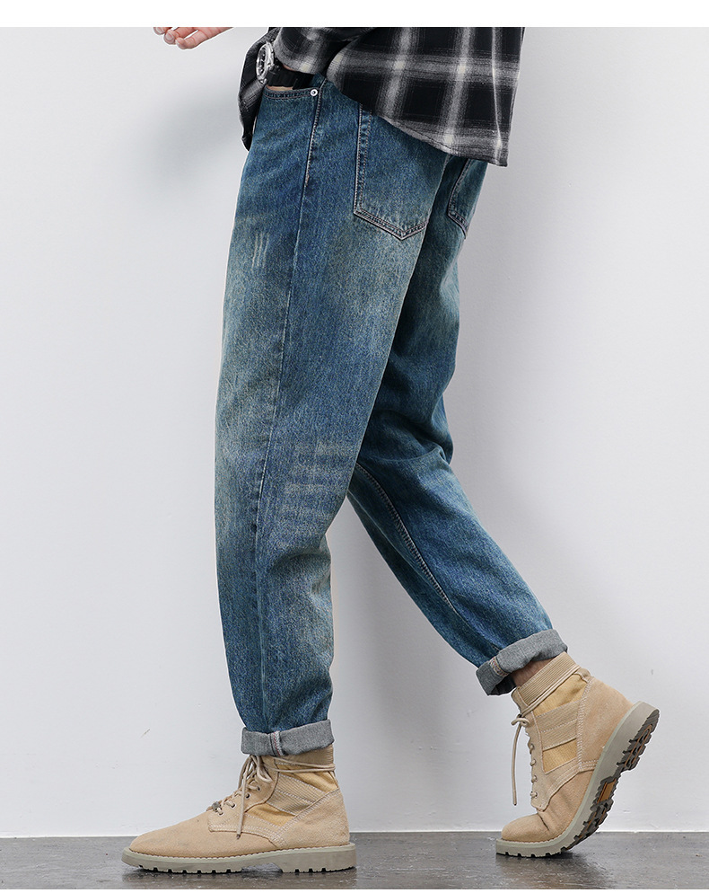 봄 2024 새로운 미국 레트로 청바지 남자 느슨한 플러스 사이즈 소년 스트레이트 긴 바지 남자 패션 브랜드스토어 가기