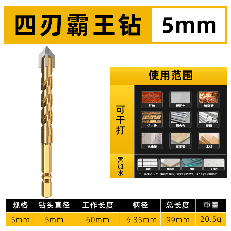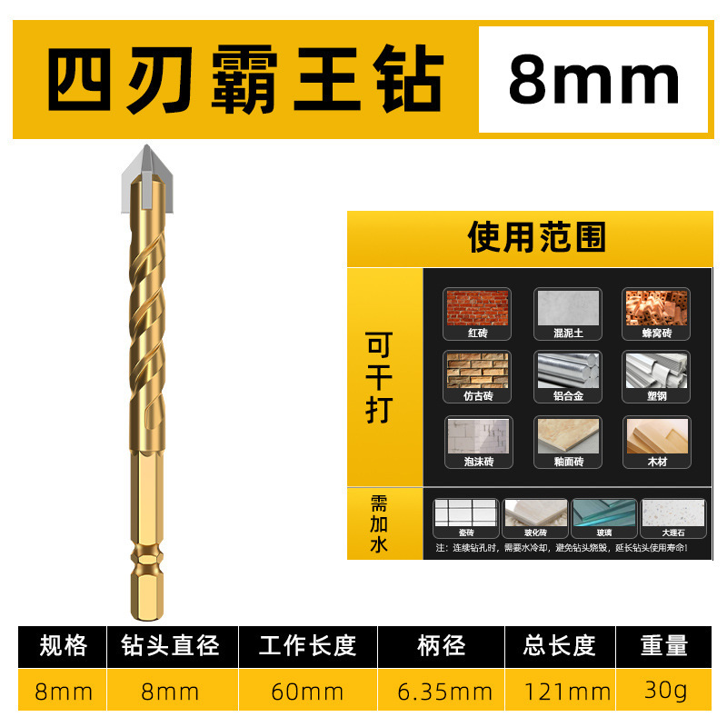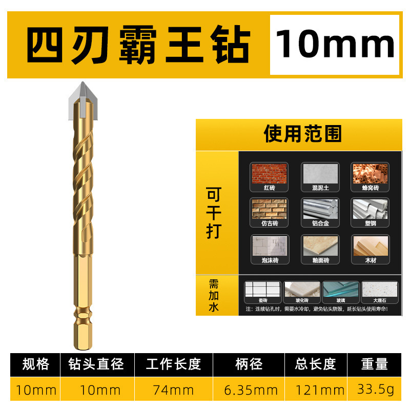 세라믹 타일 드릴 4 블레이드 충격 오버로드 드릴 육각형 생크 콘크리트 삼각형 드릴 전기 유리 드릴링 특수 풀 턴스토어 가기