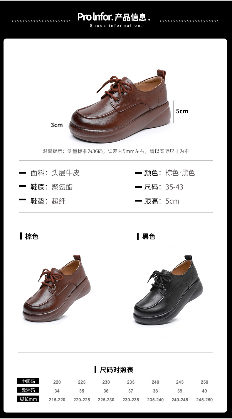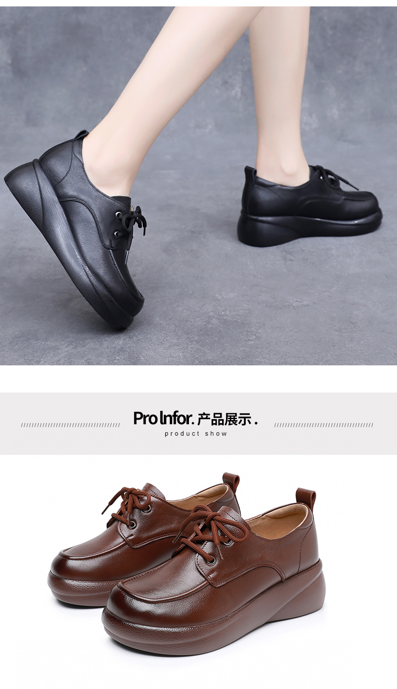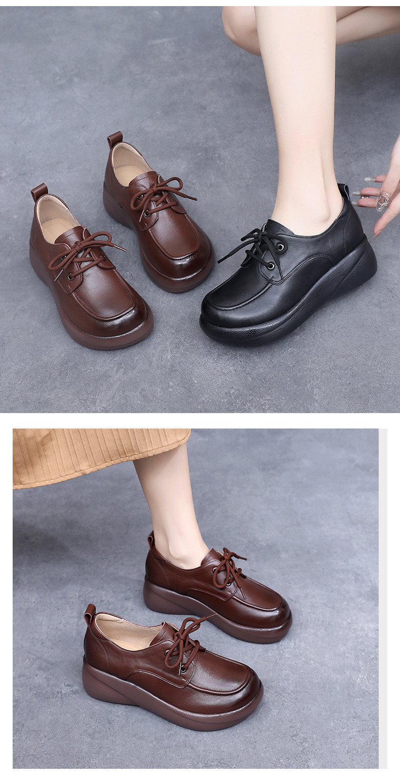 Cowhide 빈티지 영국 스타일 작은 가죽 신발 여성 두꺼운 하단 레이스 업 플러스 사이즈 로퍼 2024 봄과 가을 새로운 캐주얼 싱글 레이어 신발