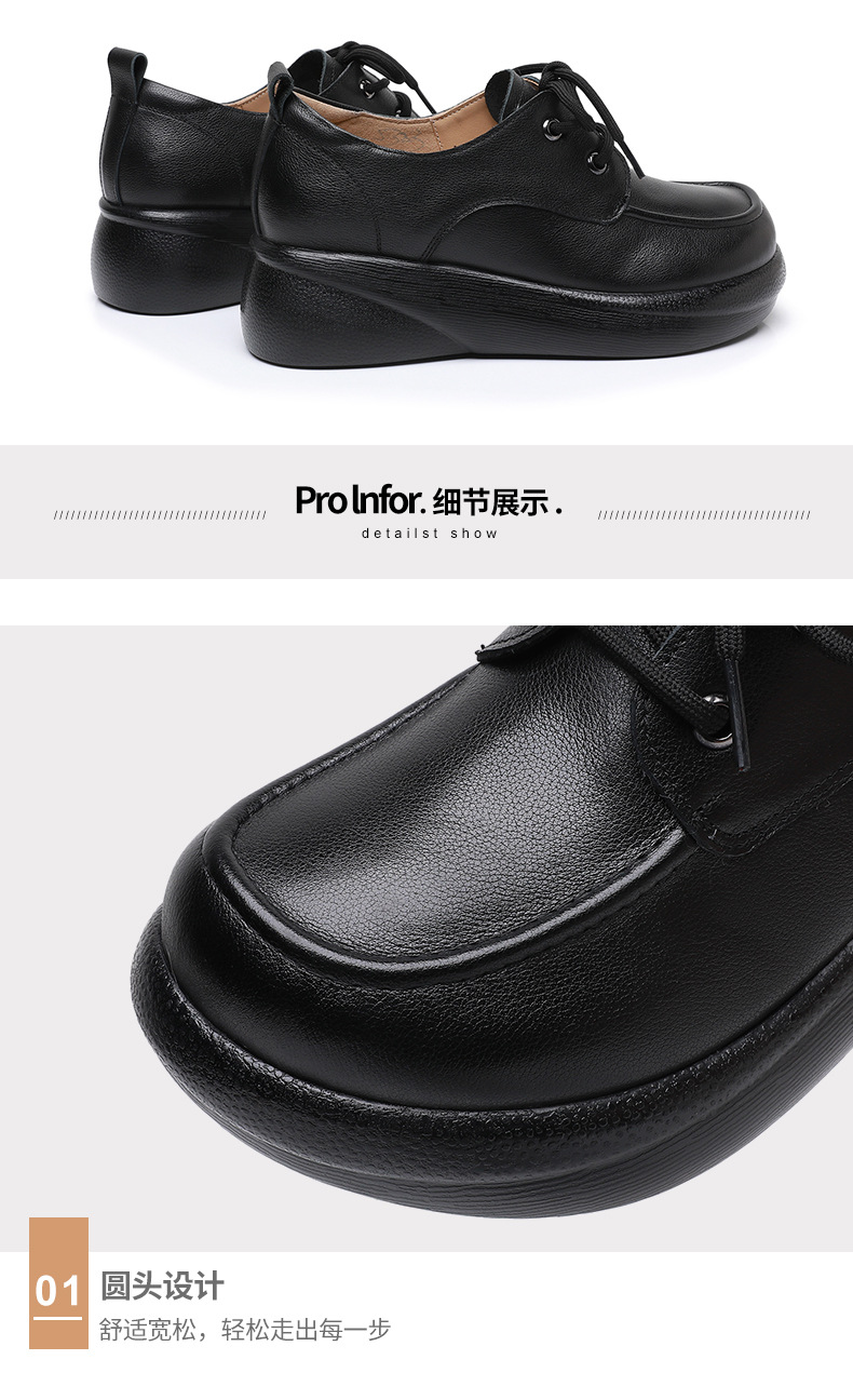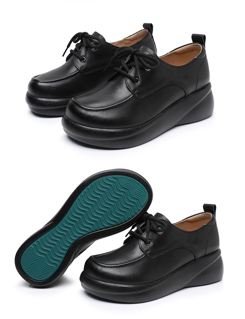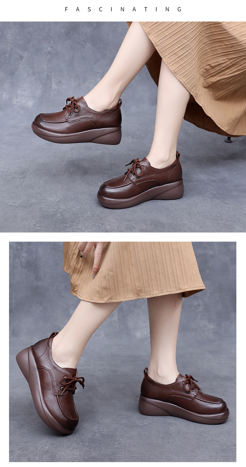 Cowhide 빈티지 영국 스타일 작은 가죽 신발 여성 두꺼운 하단 레이스 업 플러스 사이즈 로퍼 2024 봄과 가을 새로운 캐주얼 싱글 레이어 신발