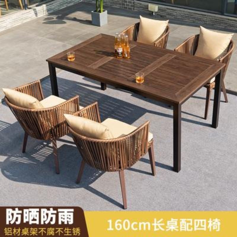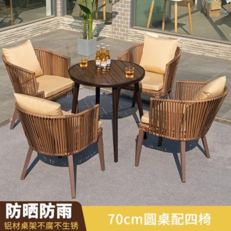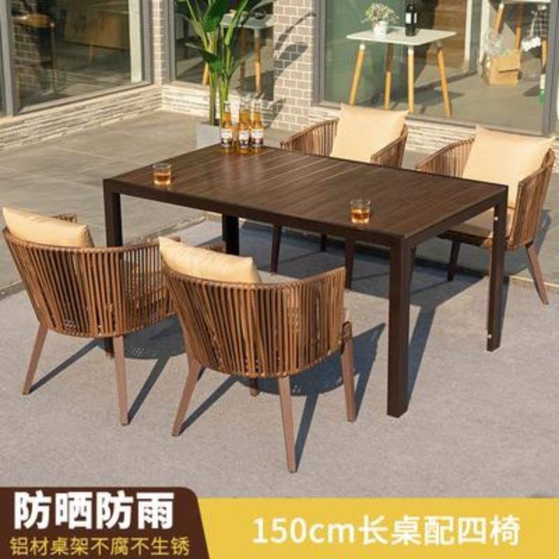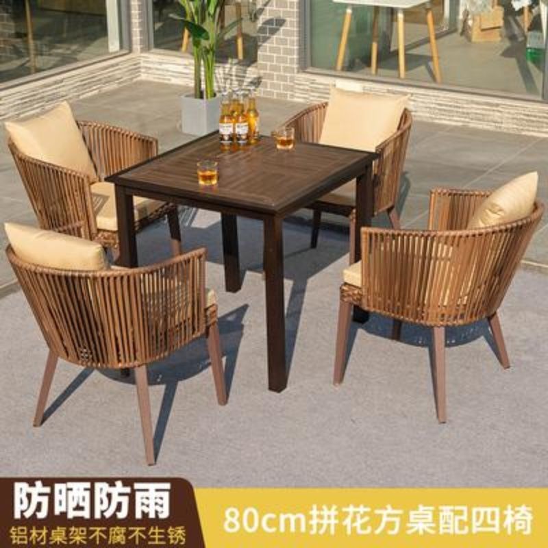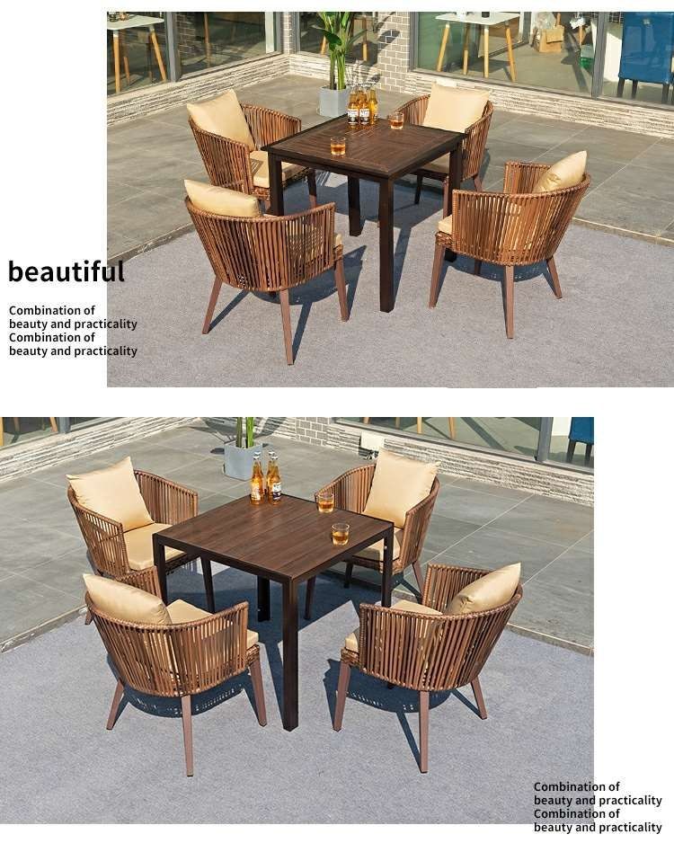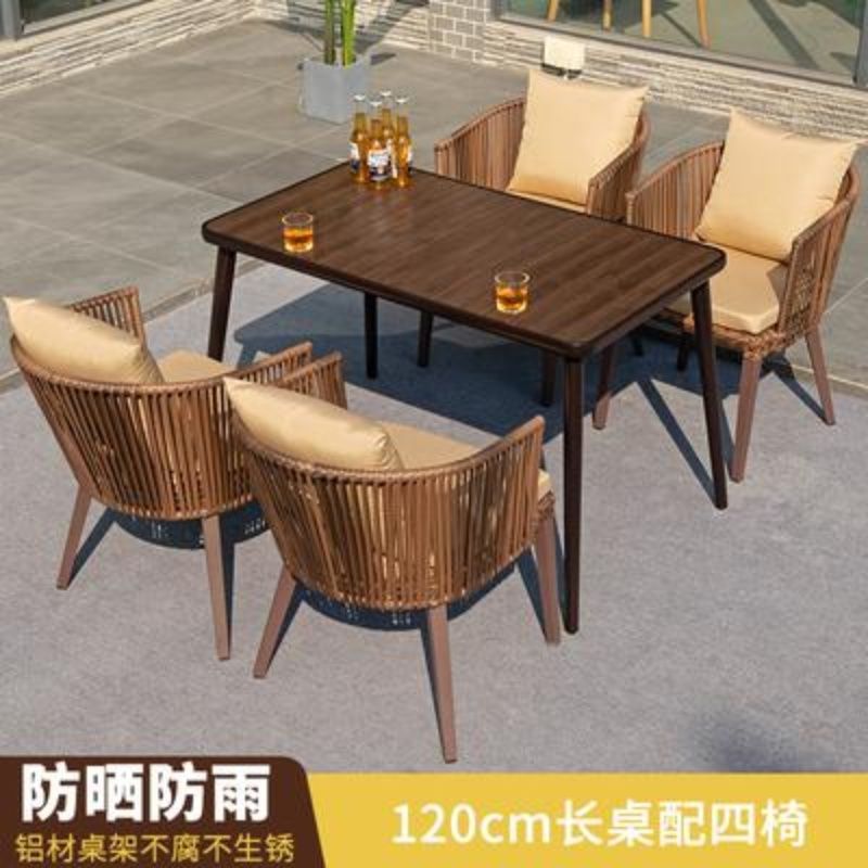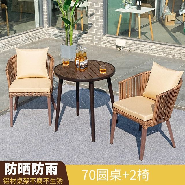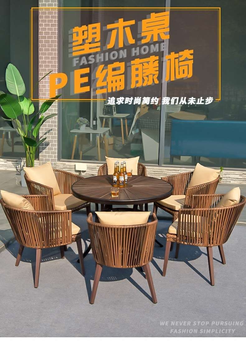 야외 레저 등나무 등나무 의자 세트 조합 안뜰 테라스 야외 야외 야외 야외 부식 방지 나무 그물 유명한 플라스틱 나무 식탁 및 의자스토어 가기