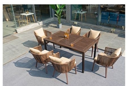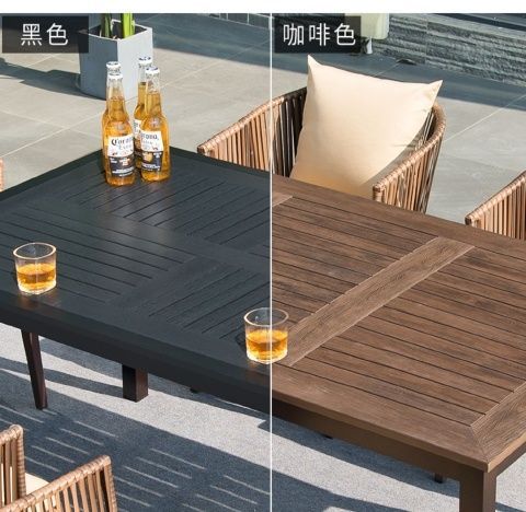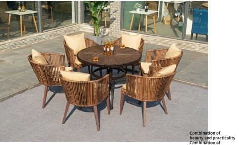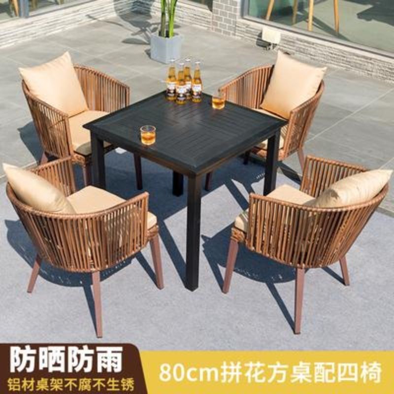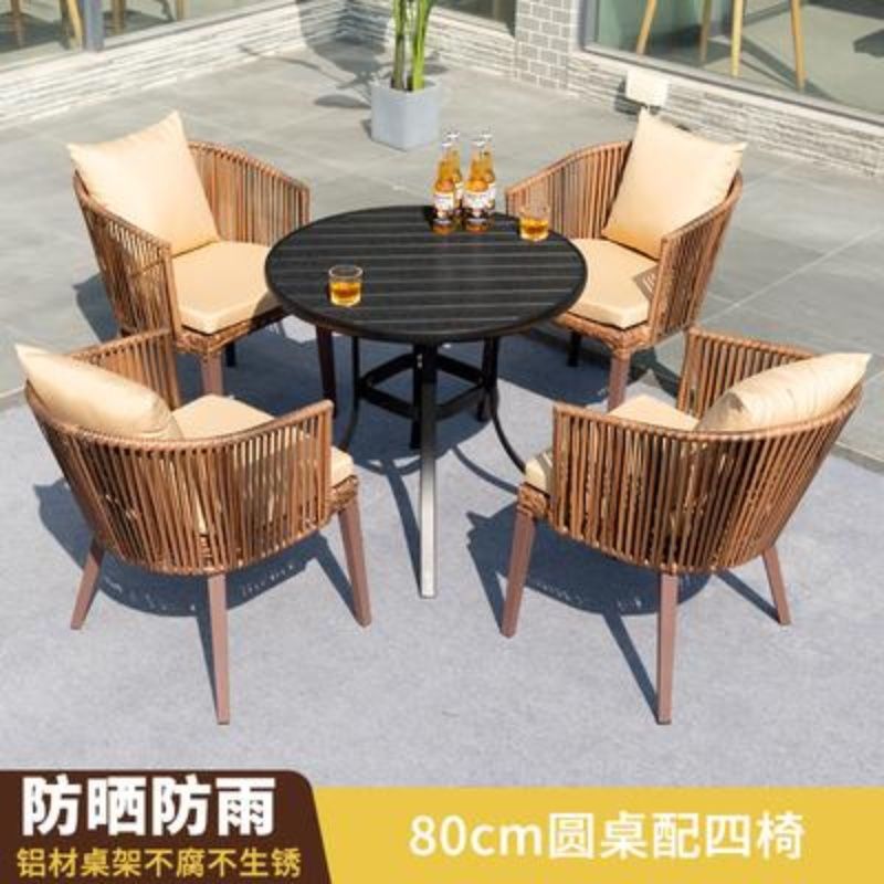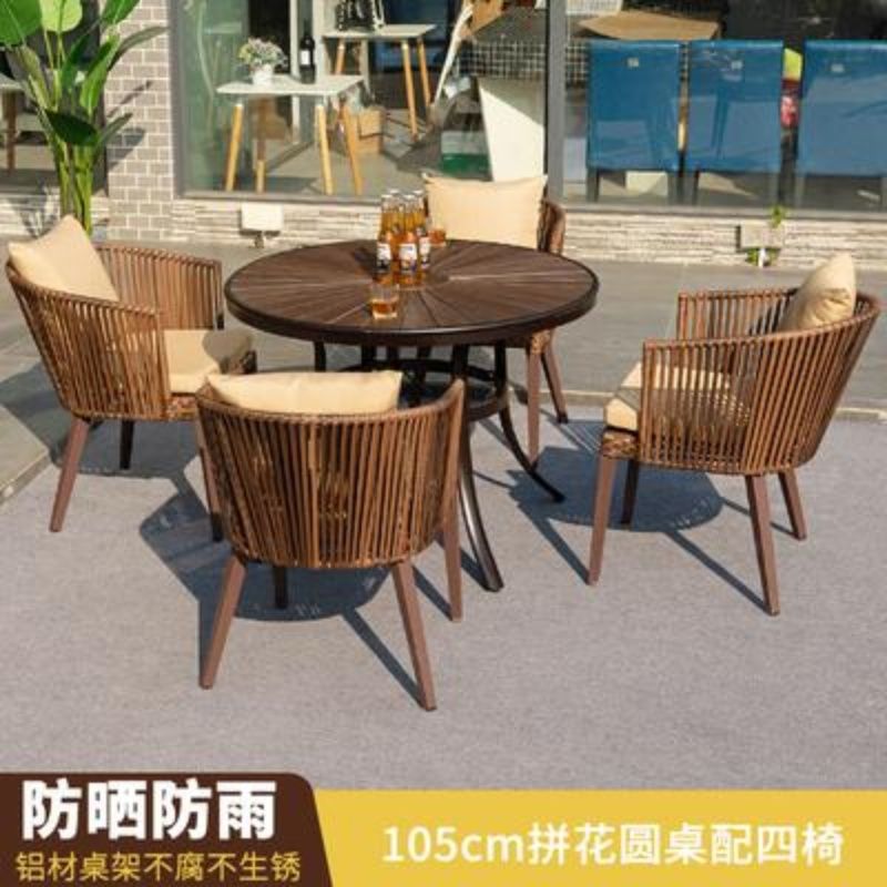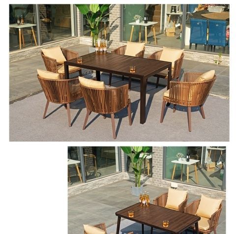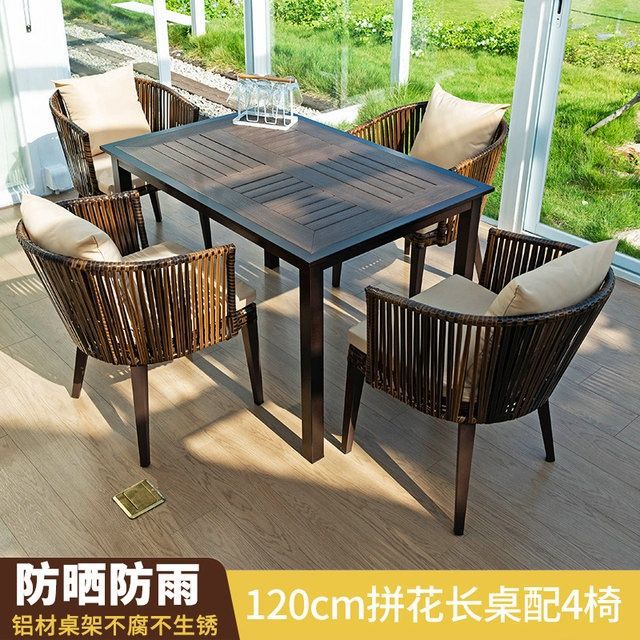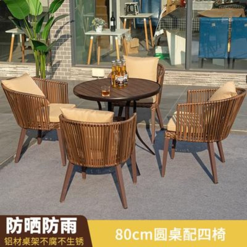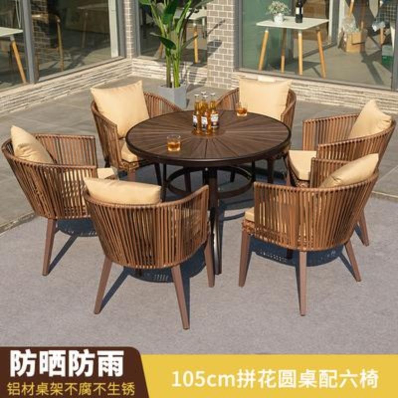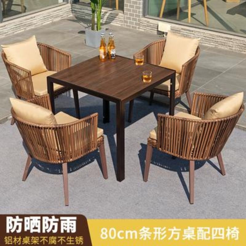 야외 레저 등나무 등나무 의자 세트 조합 안뜰 테라스 야외 야외 야외 야외 부식 방지 나무 그물 유명한 플라스틱 나무 식탁 및 의자스토어 가기