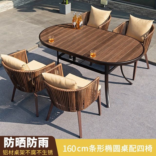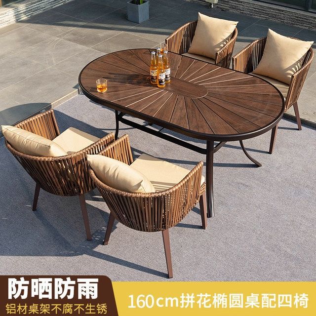 야외 레저 등나무 등나무 의자 세트 조합 안뜰 테라스 야외 야외 야외 야외 부식 방지 나무 그물 유명한 플라스틱 나무 식탁 및 의자